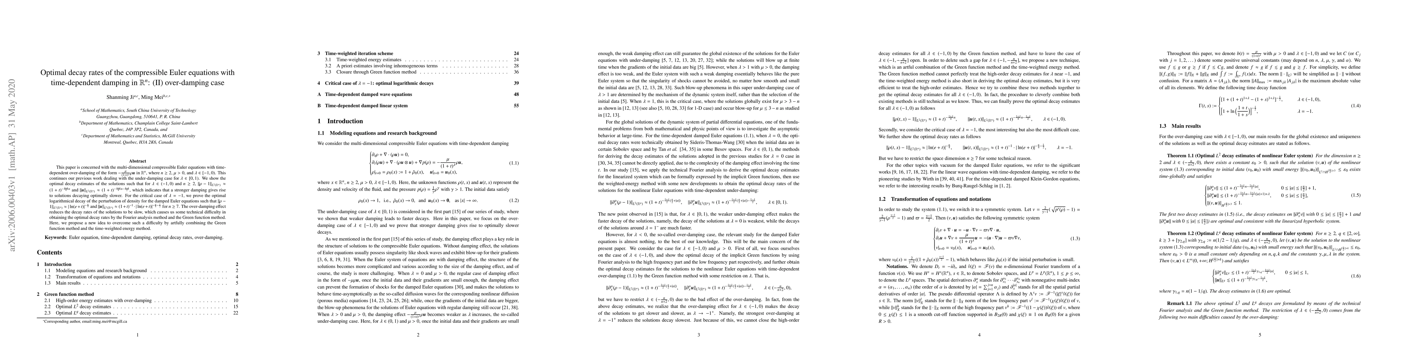 This paper is concerned with the multi-dimensional compressible Euler equations with time-dependent over-damping of the form $-\frac{\mu}{(1+t)^\lambda}\rho\boldsymbol u$ in $\mathbb R^n$, where $n\ge2$, $\mu>0$, and $\lambda\in[-1,0)$. This continues our previous work dealing with the under-damping case for $\lambda\in[0,1)$. We show the optimal decay estimates of the solutions such that for $\lambda\in(-1,0)$ and $n\ge2$, $\|\rho-1\|_{L^2(\mathbb R^n)}\approx(1+t)^{-\frac{1+\lambda}{4}n}$ and $\|\boldsymbol u\|_{L^2(\mathbb R^n)}\approx (1+t)^{-\frac{1+\lambda}{4}n-\frac{1-\lambda}{2}}$, which indicates that a stronger damping gives rise to solutions decaying optimally slower. For the critical case of $\lambda=-1$, we prove the optimal logarithmical decay of the perturbation of density for the damped Euler equations such that $\|\rho-1\|_{L^2(\mathbb R^n)}\approx |\ln(e+t)|^{-\frac{n}{4}}$ and $\|\boldsymbol u\|_{L^2(\mathbb R^n)}\approx (1+t)^{-1}\cdot|\ln(e+t)|^{-\frac{n}{4}-\frac{1}{2}}$ for $n\ge7$. The over-damping effect reduces the decay rates of the solutions to be slow, which causes us some technical difficulty in obtaining the optimal decay rates by the Fourier analysis method and the Green function method. Here, we propose a new idea to overcome such a difficulty by artfully combining the Green function method and the time-weighted energy method.