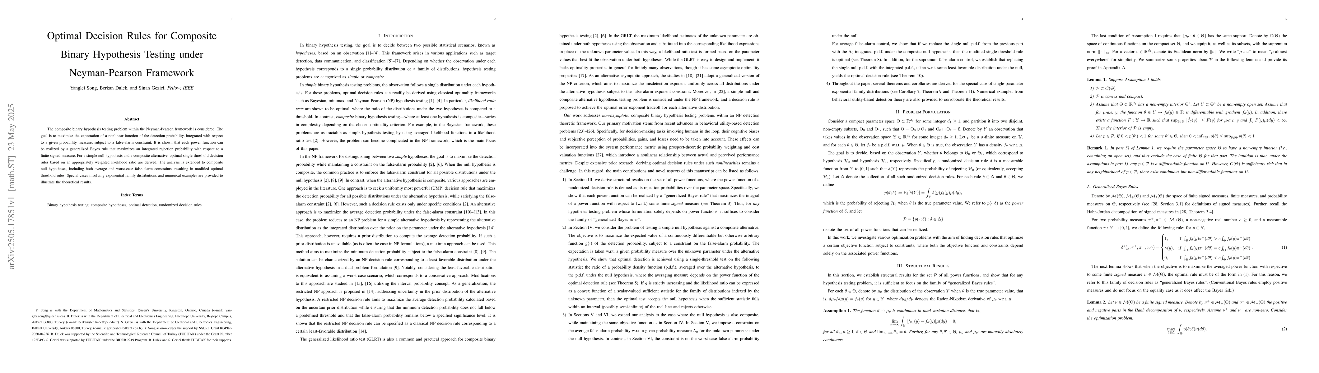 Researchers developed optimal decision rules for composite binary hypothesis testing that maximize detection probability while minimizing false alarms, with applications in various fields.