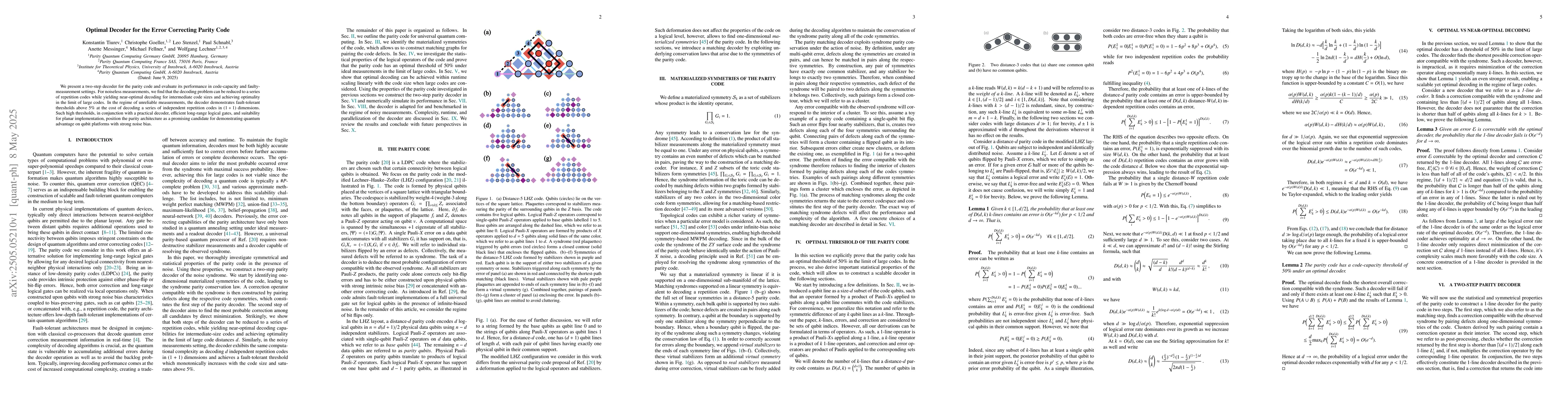 This paper introduces a two-step decoder for the parity code, showing near-optimal performance for noiseless measurements and high fault-tolerant thresholds for unreliable measurements. The decoder is promising for demonstrating quantum advantage on noisy qubit platforms due to its efficiency and suitability for planar implementation.