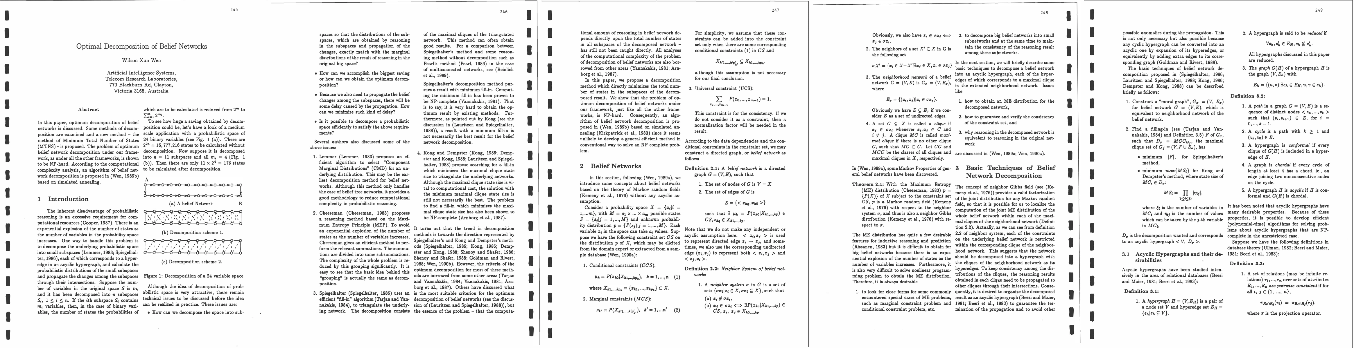 This paper proposes a new method called Minimum Total Number of States (MTNS) for optimal decomposition of belief networks, demonstrating that the problem remains NP-hard. It also references an existing algorithm based on simulated annealing for computational complexity analysis.