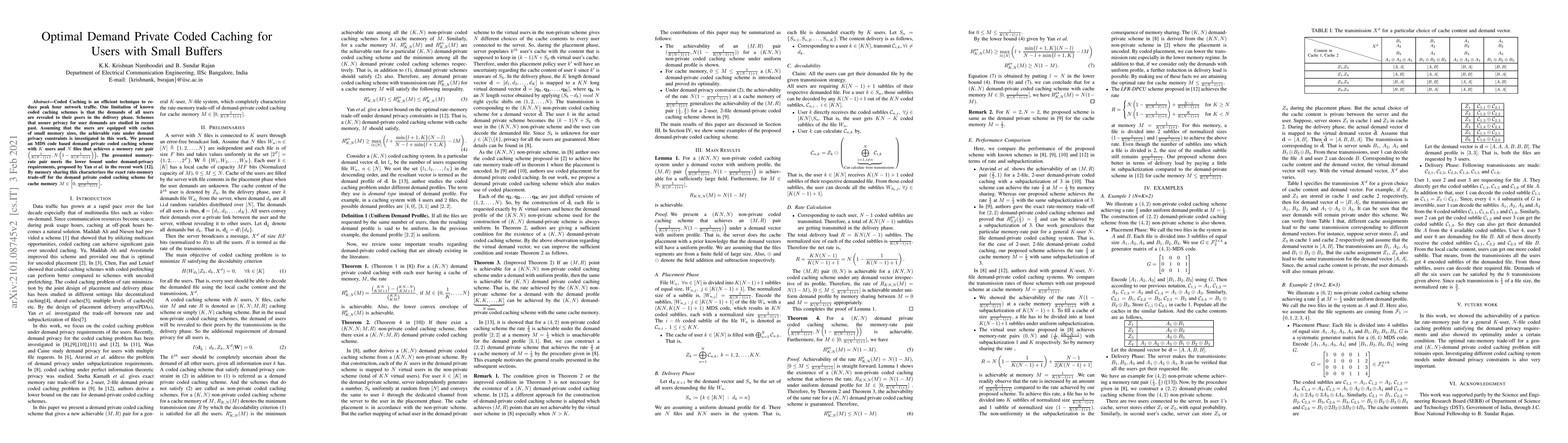 This paper investigates optimal demand private coded caching for users with small caches, presenting a Maximum Distance Separable (MDS) code-based scheme that achieves a memory-rate pair meeting the lower bound under demand privacy constraints. The proposed scheme characterizes the exact rate-memory trade-off for cache sizes up to a specific threshold.