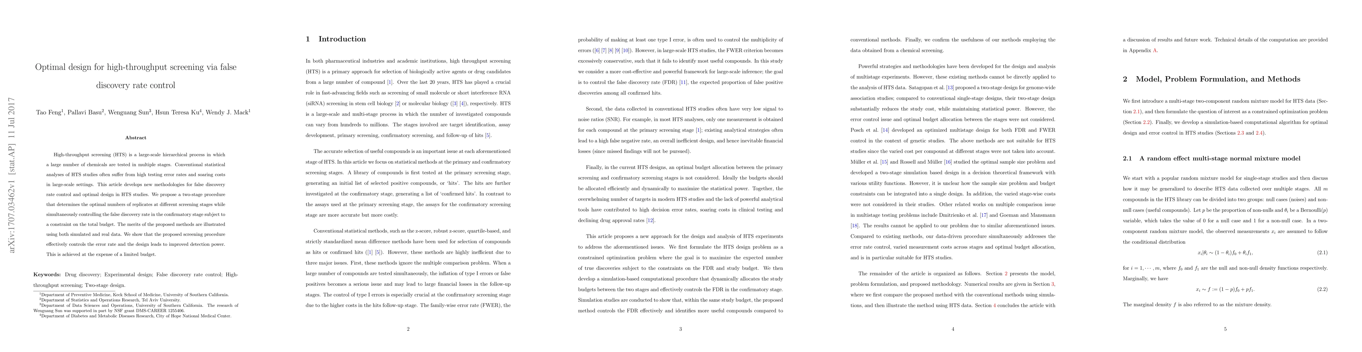 This paper proposes new methodologies for controlling the false discovery rate and optimizing design in high-throughput screening studies, introducing a two-stage procedure that determines the optimal number of replicates while managing costs and improving detection power. The effectiveness of the proposed approach is demonstrated through simulations and real data.