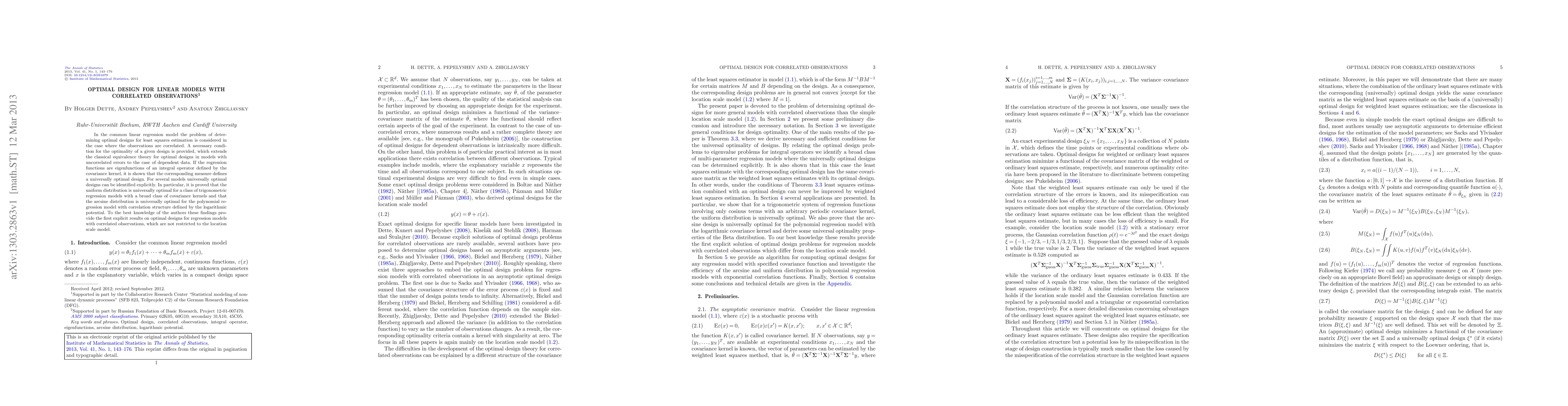 This paper explores optimal design strategies for linear regression models with correlated observations, extending classical optimality theory to dependent data. It identifies universally optimal designs, such as the uniform distribution for trigonometric regression models and the arcsine distribution for polynomial regression models, providing the first explicit results for such models beyond location-scale restrictions.