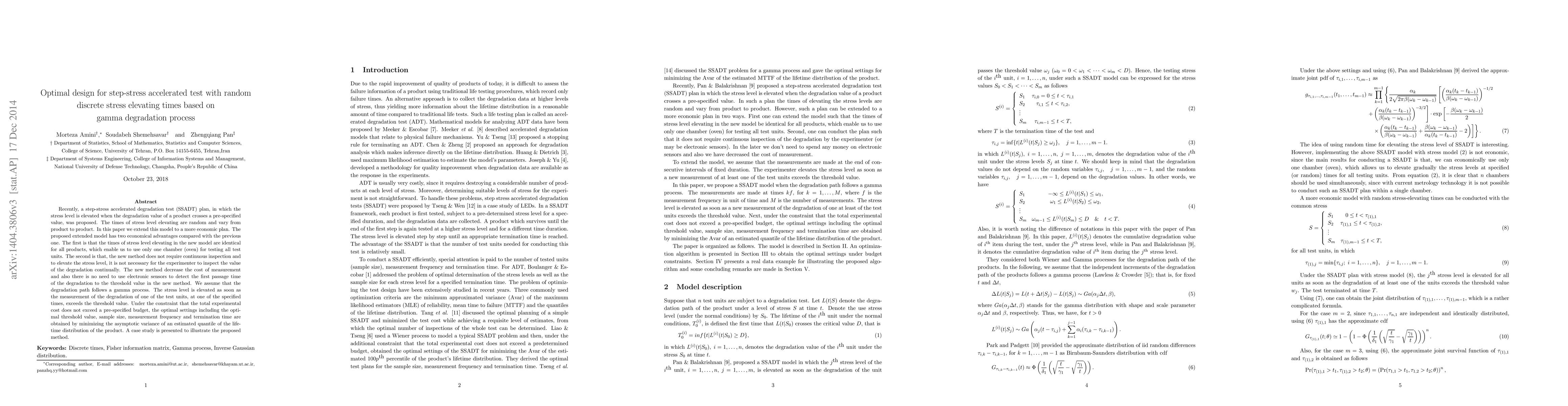This paper proposes an optimal step-stress accelerated degradation test (SSADT) model for products with random discrete stress elevating times based on a gamma degradation process. The new model reduces costs by using a single testing chamber and eliminating continuous degradation inspections, thereby simplifying the experimental setup and reducing measurement expenses.