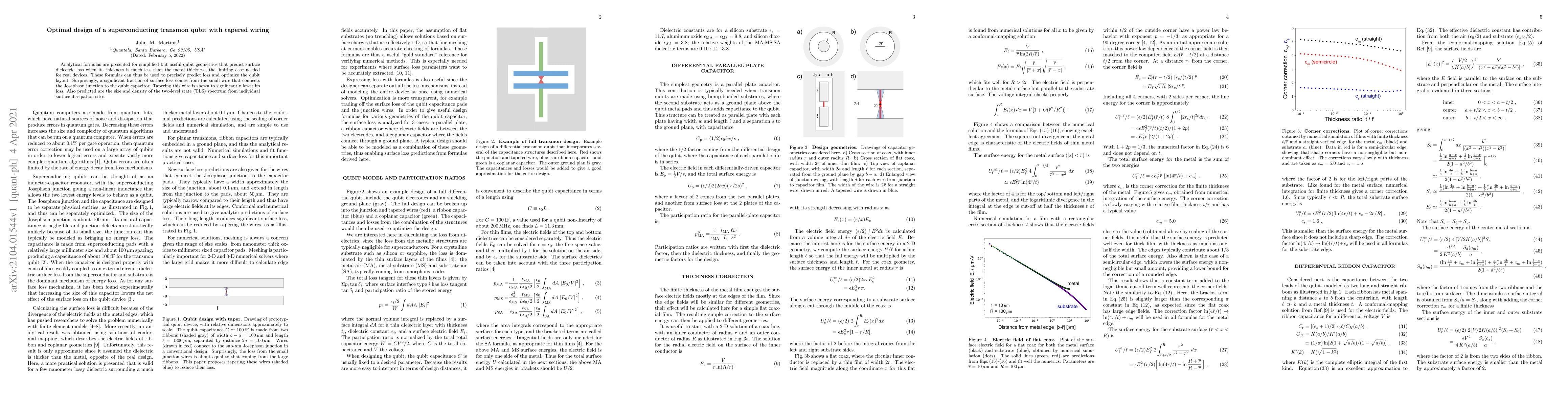 Analytical formulas are presented for simplified but useful qubit geometries that predict surface dielectric loss when its thickness is much less than the metal thickness, the limiting case needed for real devices. These formulas can thus be used to precisely predict loss and optimize the qubit layout. Surprisingly, a significant fraction of surface loss comes from the small wire that connects the Josephson junction to the qubit capacitor. Tapering this wire is shown to significantly lower its loss. Also predicted are the size and density of the two-level state (TLS) spectrum from individual surface dissipation sites.