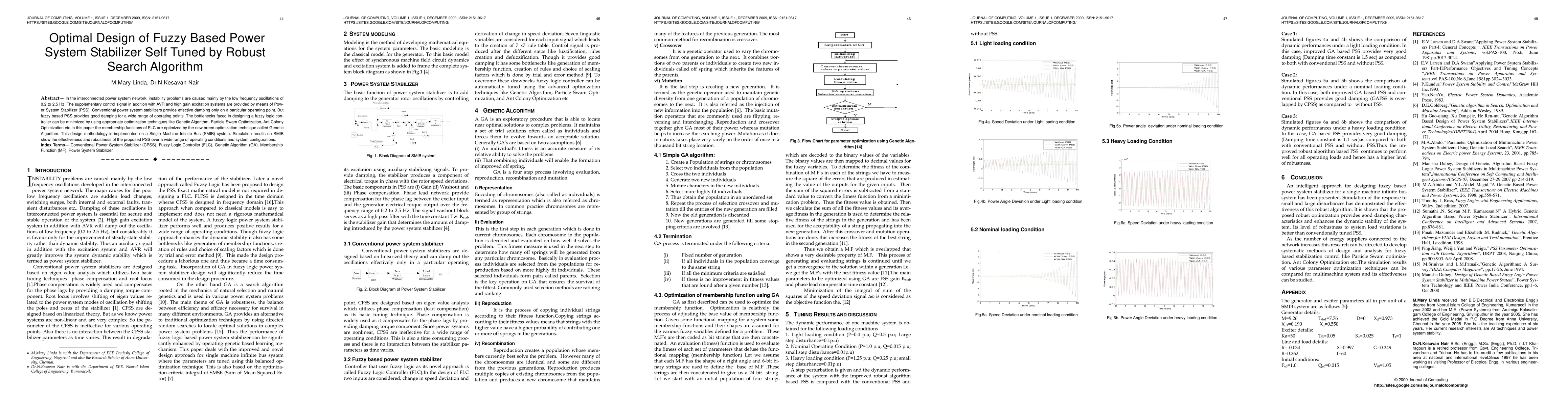In the interconnected power system network, instability problems are caused mainly by the low frequency oscillations of 0.2 to 2.5 Hz. The supplementary control signal in addition with AVR and high gain excitation systems are provided by means of Power System Stabilizer (PSS). Conventional power system stabilizers provide effective damping only on a particular operating point. But fuzzy based PSS provides good damping for a wide range of operating points. The bottlenecks faced in designing a fuzzy logic controller can be minimized by using appropriate optimization techniques like Genetic Algorithm, Particle Swam Optimization, Ant Colony Optimization etc.In this paper the membership functions of FLC are optimized by the new breed optimization technique called Genetic Algorithm. This design methodology is implemented on a Single Machine Infinite Bus (SMIB) system. Simulation results on SMIB show the effectiveness and robustness of the proposed PSS over a wide range of operating conditions and system configurations.