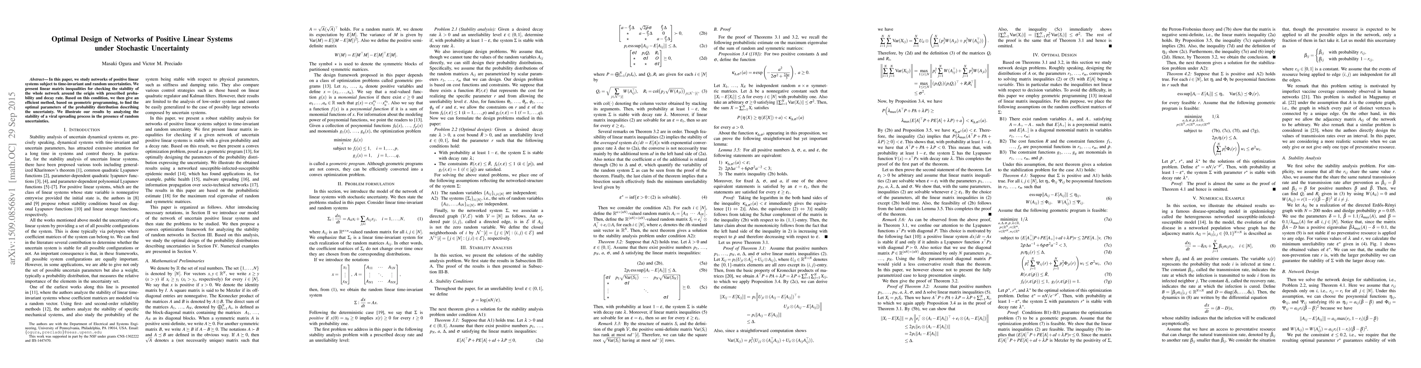 Researchers develop methods to ensure stability of networks of positive linear systems with uncertainties, providing a way to optimize parameters for desired probability and decay rates.