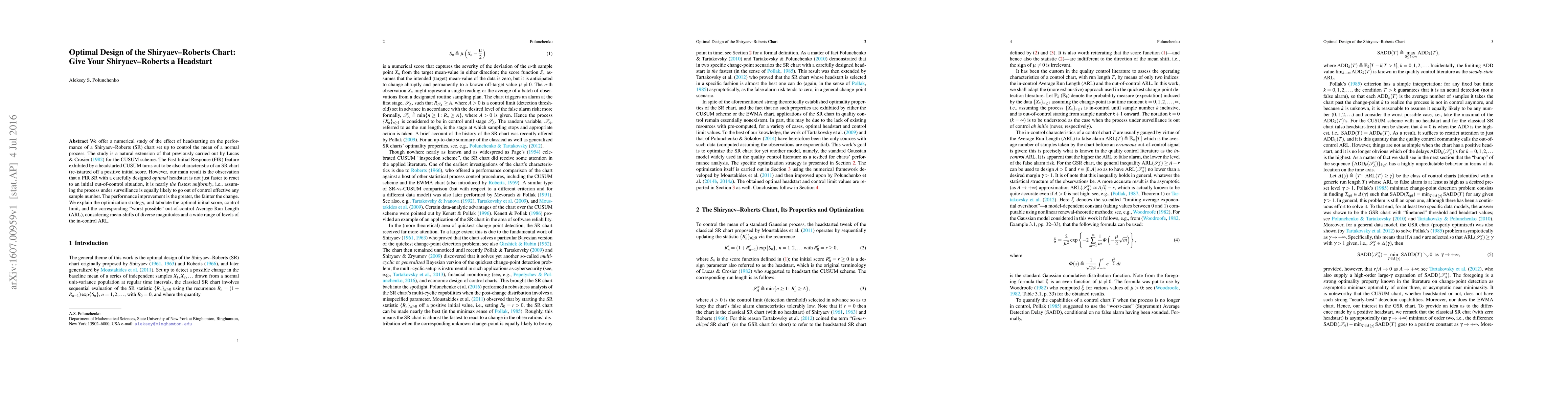 We offer a numerical study of the effect of headstarting on the performance of a Shiryaev-Roberts (SR) chart set up to control the mean of a normal process. The study is a natural extension of that previously carried out by Lucas and Crosier for the CUSUM scheme in their seminal 1982 paper published in Technometrics. The Fast Initial Response (FIR) feature exhibited by a headstarted CUSUM turns out to be also characteristic of an SR chart (re-)started off a nonzero initial score. However, our main result is the observation that a FIR SR with a carefully designed {\em optimal} headstart is not just faster to react to an initial out-of-control situation, it is nearly {\em the} fastest {\em uniformly}, i.e., assuming the process under surveillance is equally likely to go out of control effective any sample number. The performance improvement is the greater, the fainter the change. We explain the optimization strategy, and tabulate the optimal initial score, control limit, and the corresponding "worst possible" out-of-control Average Run Length (ARL), considering mean-shifts of diverse magnitudes and a wide range of levels of the in-control ARL.