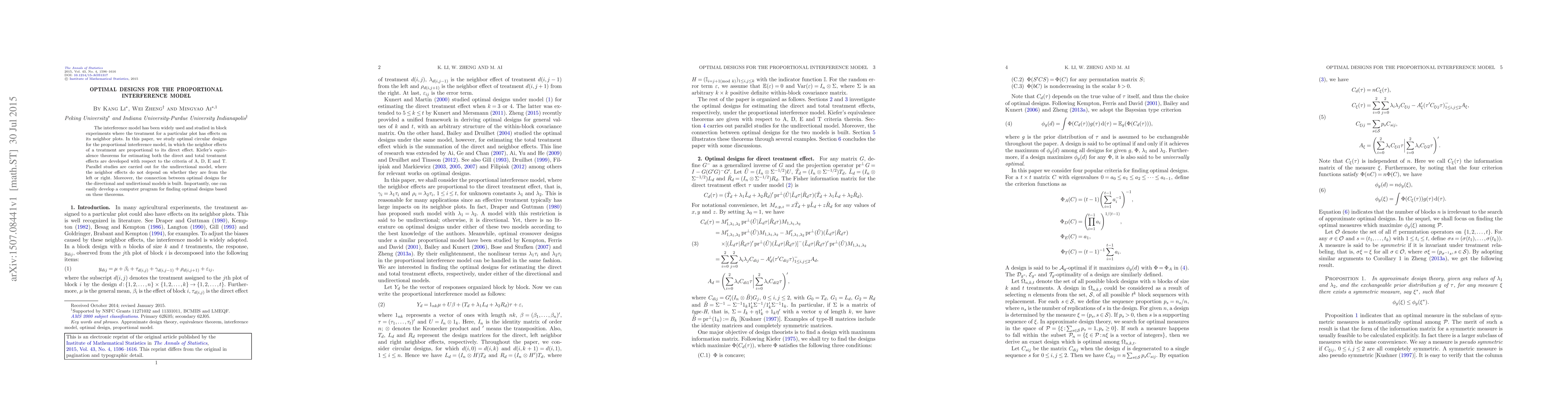 A systematic review of existing research on optimal designs for proportional interference models was conducted.