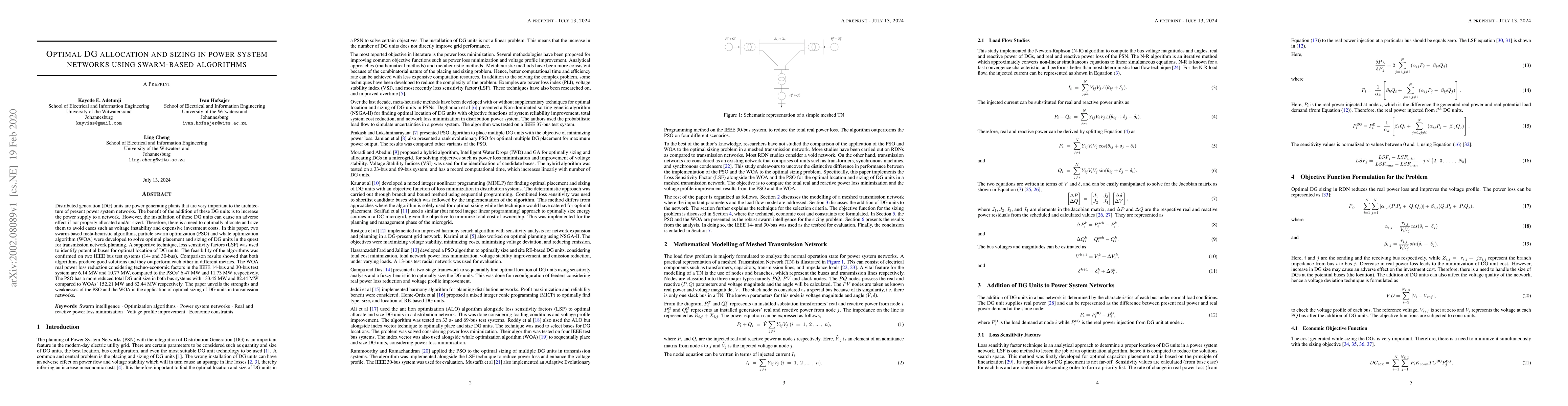 A comprehensive literature review was conducted to identify existing research on distributed generation (DG) placement and sizing in distribution systems.