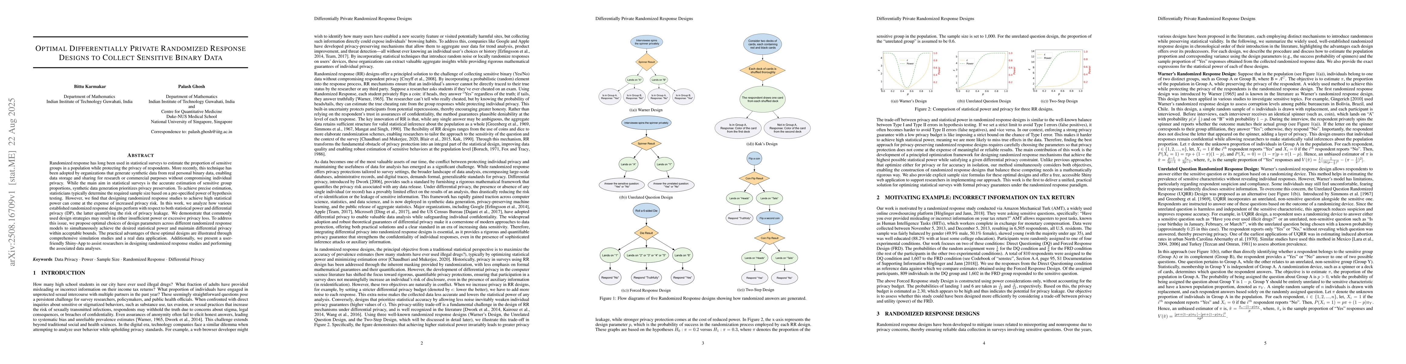 Randomized response has long been used in statistical surveys to estimate the proportion of sensitive groups in a population while protecting the privacy of respondents. More recently, this technique has been adopted by organizations that generate synthetic data from real personal binary data, enabling data storage and sharing for research or commercial purposes without compromising individual privacy. While the main aim in statistical surveys is the accurate estimation of sensitive group proportions, synthetic data generation prioritizes privacy preservation. To achieve precise estimation, statisticians typically determine the required sample size based on a pre-specified power of hypothesis testing. However, we find that designing randomized response studies to achieve high statistical power can come at the expense of increased privacy risk. In this work, we analyze how various established randomized response designs perform with respect to both statistical power and differential privacy (DP), the latter quantifying the risk of privacy leakage. We demonstrate that commonly used design strategies may result in either insufficient power or excessive privacy loss. To address this issue, we propose optimal choices of design parameters across different randomized response models to simultaneously achieve the desired statistical power and maintain differential privacy within acceptable bounds. The practical advantages of these optimal designs are illustrated through comprehensive simulation studies and a real data application. Additionally, we present a user-friendly Shiny-App to assist researchers in designing randomized response studies and performing the associated data analyses.