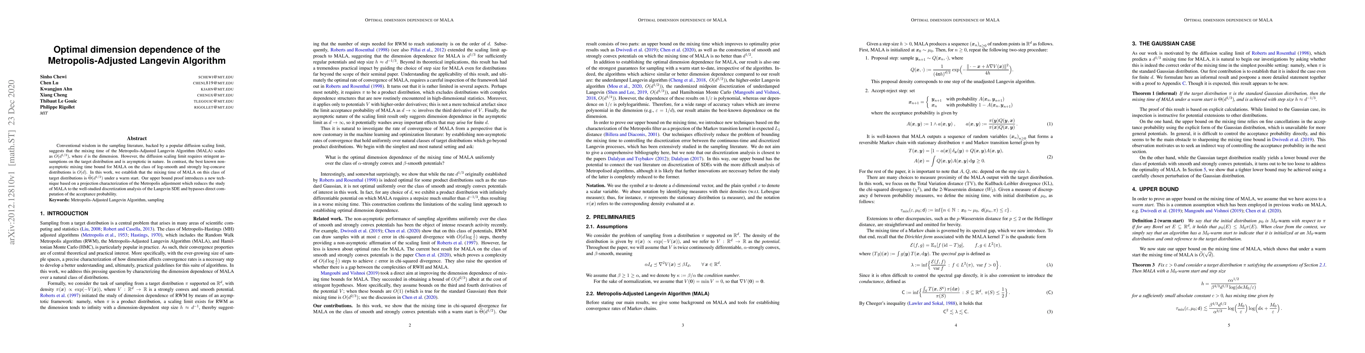 This paper investigates the optimal dimension dependence of the Metropolis-Adjusted Langevin Algorithm (MALA), showing that its mixing time on log-smooth and strongly log-concave distributions is $\widetilde\Theta(d^{1/2})$, improving upon the conventional $O(d^{1/3})$ scaling. The new upper bound leverages a projection characterization technique to simplify analysis.