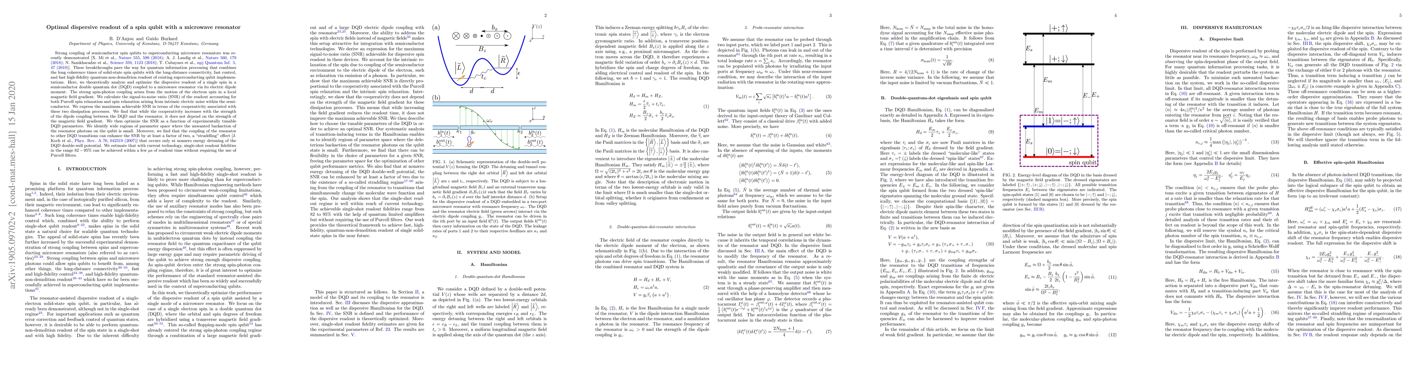 This paper theoretically optimizes dispersive readout for a semiconductor spin qubit connected to a microwave resonator, achieving high signal-to-noise ratios by balancing spin relaxation and electric noise. The study identifies regions minimizing qubit backaction and finds that coupling to other transitions can double SNR, projecting single-shot readout fidelities of 82-95% with current technology.