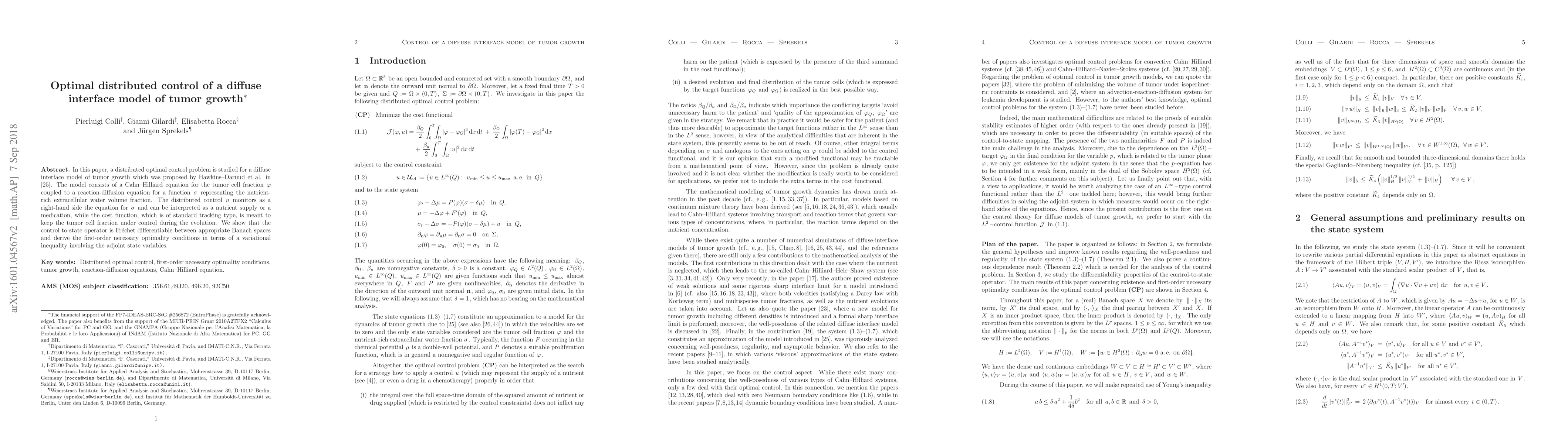 This paper investigates optimal distributed control for a diffuse interface model of tumor growth, focusing on a Cahn-Hilliard equation coupled with a reaction-diffusion equation. The control aims to regulate the tumor cell fraction by adjusting the nutrient supply or medication, and the study derives necessary optimality conditions using variational inequalities.