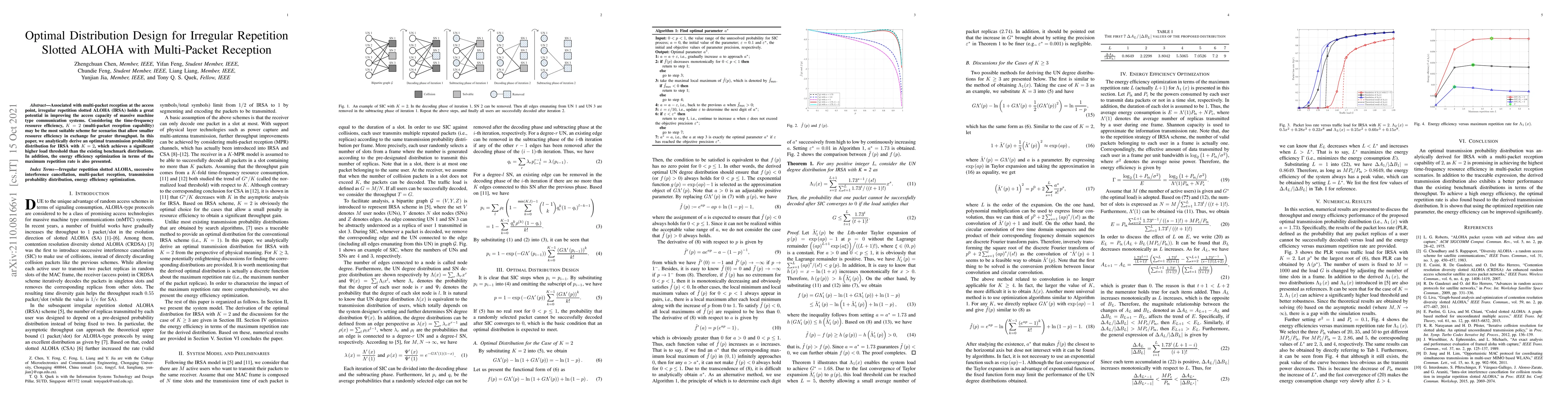 This paper develops an optimal transmission probability distribution for irregular repetition slotted ALOHA with multi-packet reception (K = 2) to enhance access capacity in massive machine type communication. The proposed distribution achieves a higher load threshold compared to existing benchmarks and optimizes energy efficiency through maximum repetition rate.