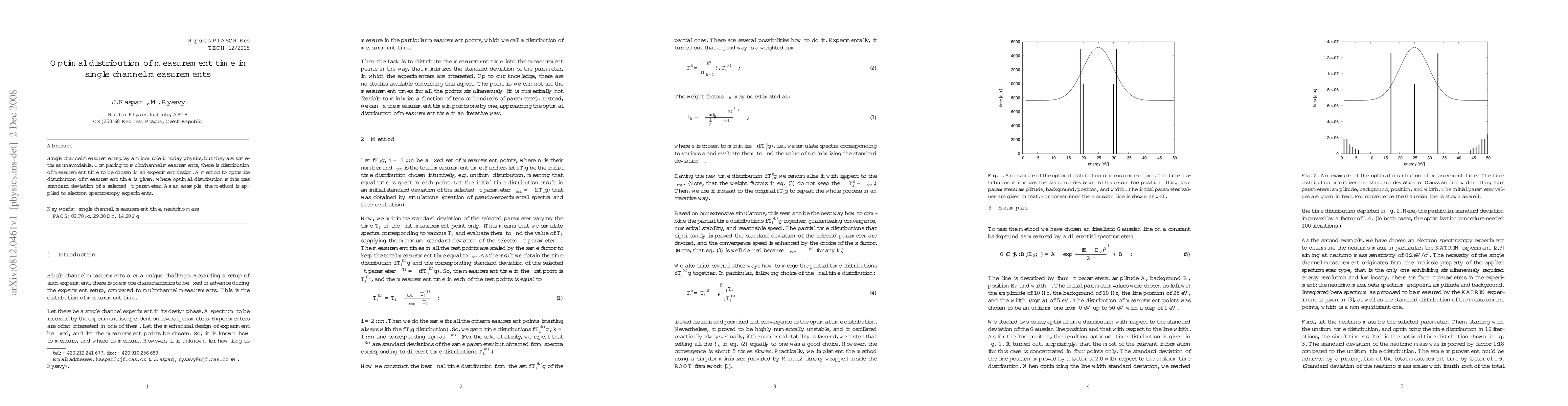 Single channel measurements play a minor role in today physics, but they are sometimes unavoidable. Comparing to multichannel measurements, there is distribution of measurement time to be chosen in an experiment design. A method to optimize distribution of measurement time is given, where optimal distribution minimizes standard deviation of a selected fit parameter. As an example, the method is applied to electron spectroscopy experiments.