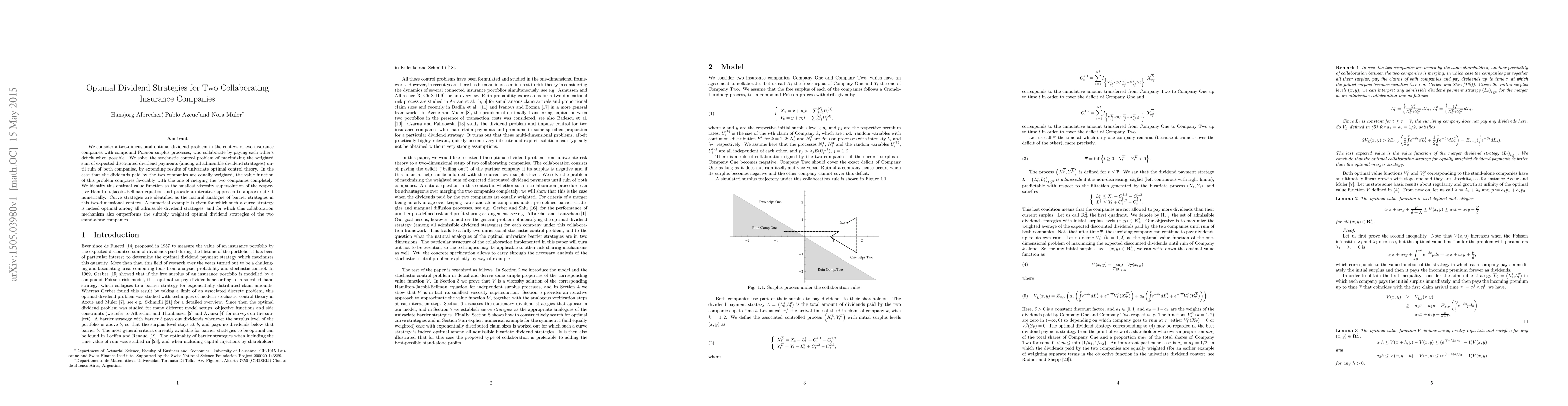 This paper explores optimal dividend strategies for two collaborating insurance companies with compound Poisson surplus processes. It maximizes the weighted sum of expected discounted dividends until ruin, identifying curve strategies as the optimal approach, which outperforms stand-alone strategies when dividends are equally weighted.