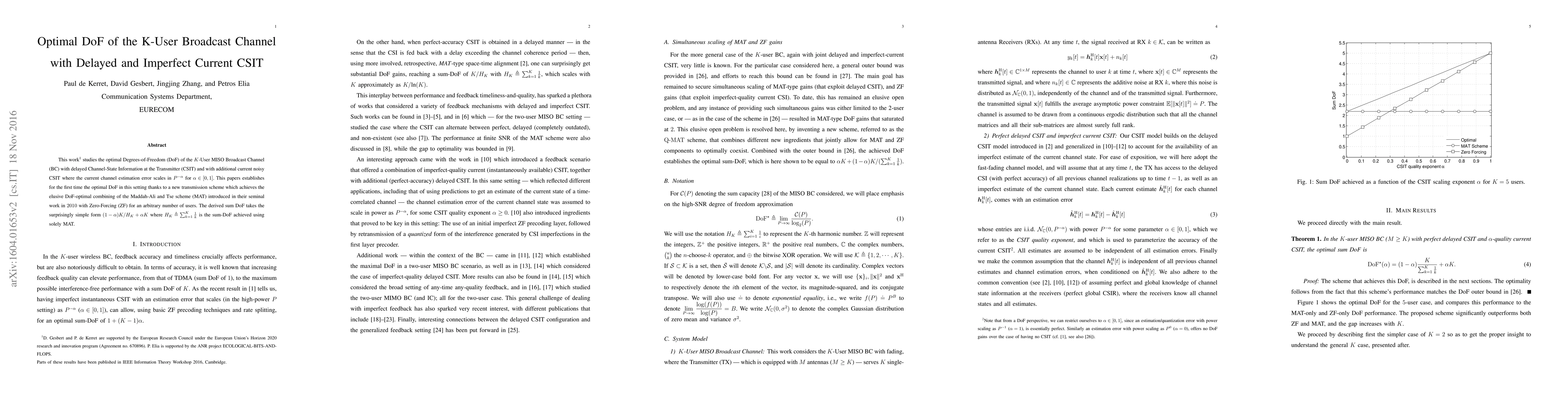 This paper studies optimal Degrees-of-Freedom for a $K$-user broadcast channel with delayed and imperfect Channel-State Information at the Transmitter, establishing a new transmission scheme that achieves DoF-optimal combining.