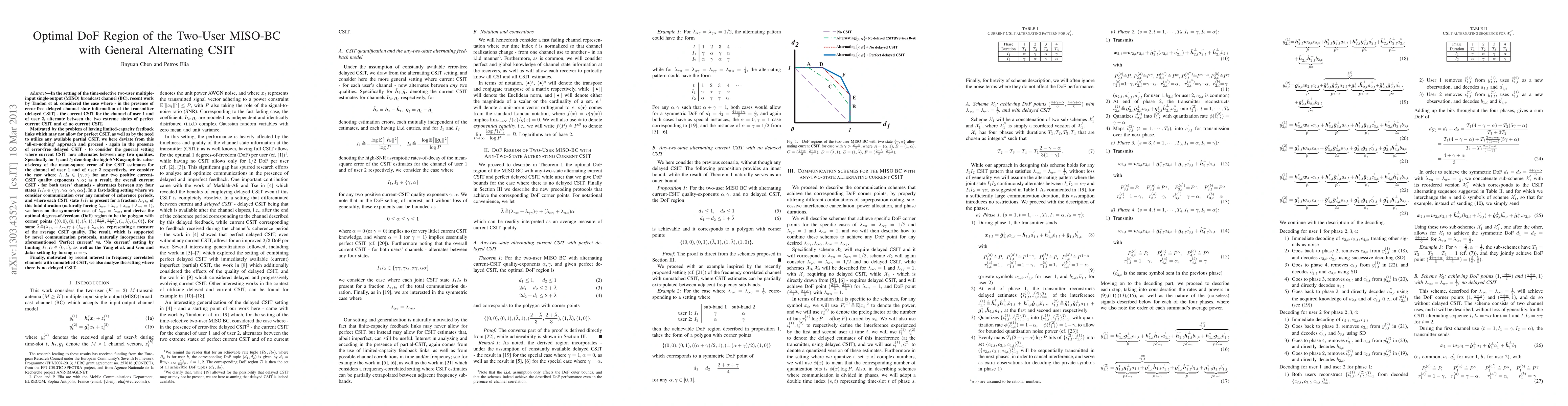Researchers derive an optimal degrees-of-freedom region for a two-user multiple-input single-output broadcast channel with general alternating current channel state information at the transmitter.