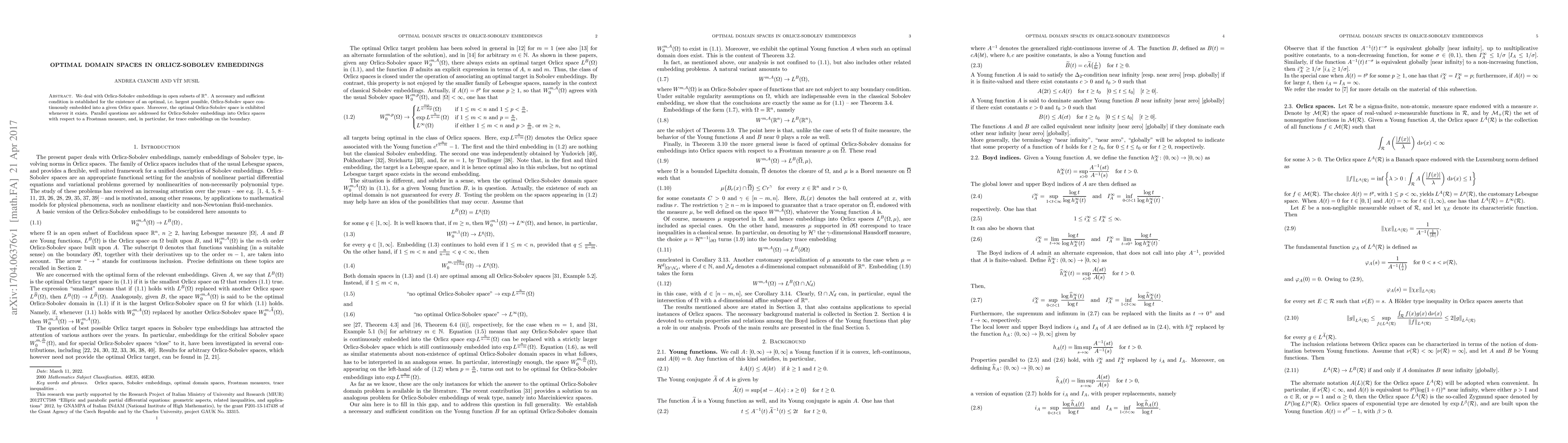 This paper establishes necessary and sufficient conditions for the existence of optimal Orlicz-Sobolev spaces embedded into given Orlicz spaces in $\mathbb{R}^n$. It also identifies these optimal spaces when they exist, and addresses related embedding issues concerning Frostman measures and trace embeddings on boundaries.