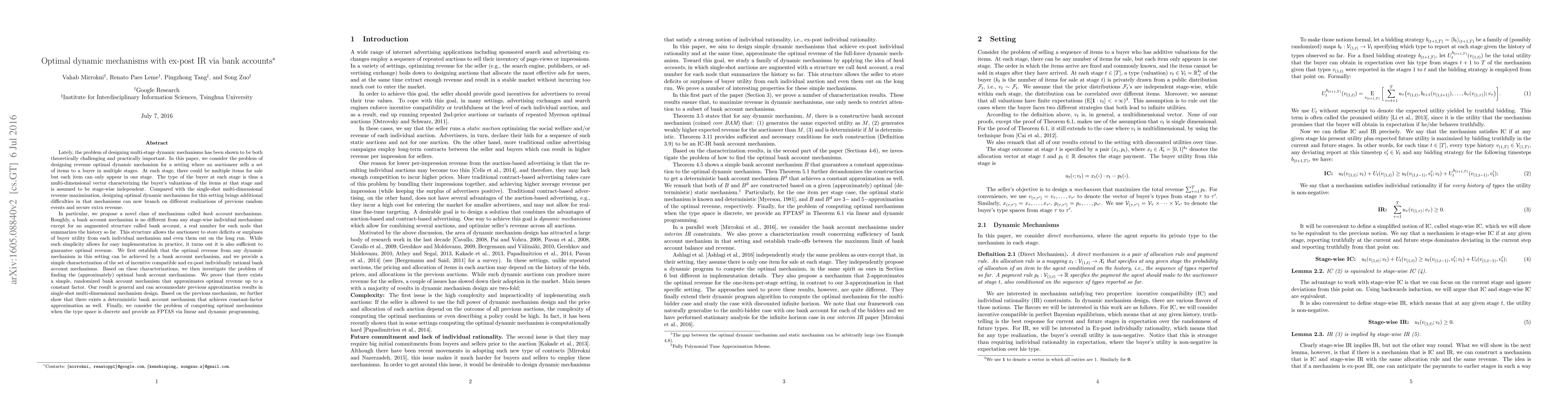 Researchers design a new mechanism called bank account mechanisms to optimize revenue in dynamic auctions with multiple stages, finding that these mechanisms can achieve near-optimal results with simple randomized or deterministic designs.