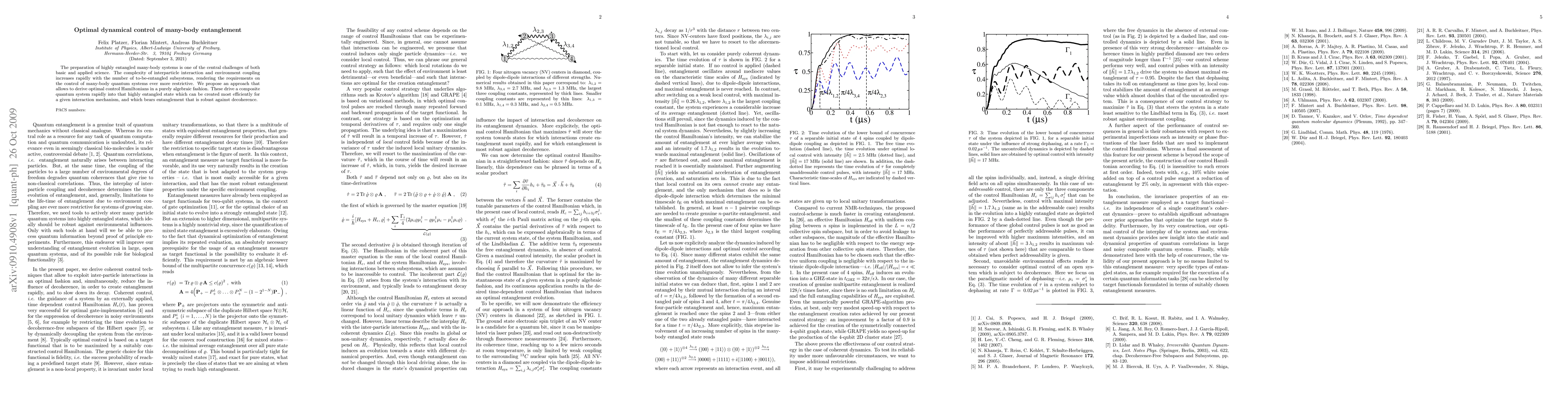 This paper proposes an algebraic method for deriving optimal control Hamiltonians to efficiently prepare highly entangled many-body quantum states, ensuring entanglement robustness against decoherence despite the complexity of interparticle interactions and environmental coupling.