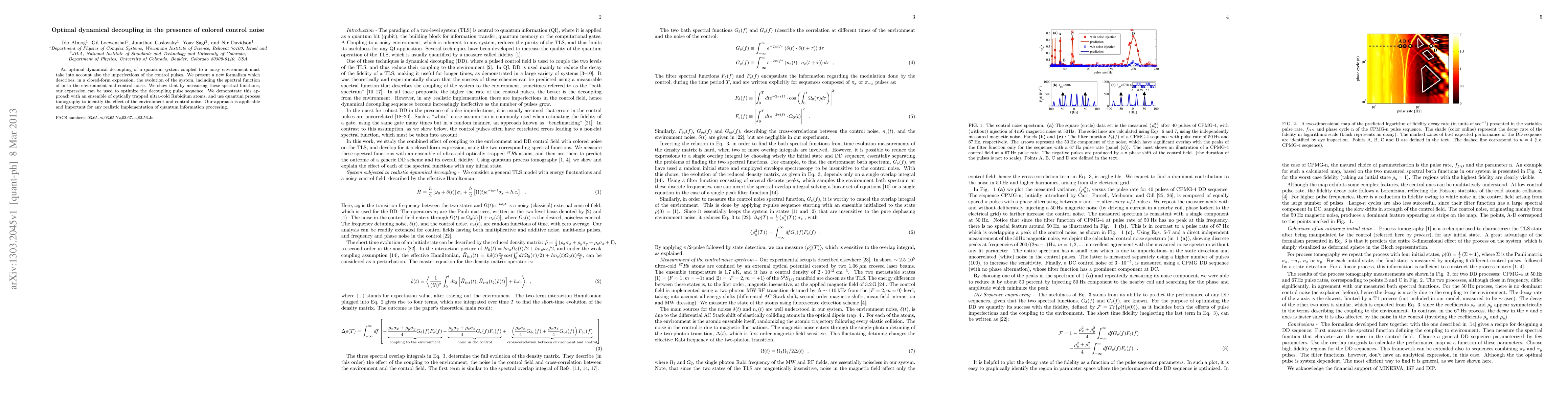 This paper introduces a new formalism for optimal dynamical decoupling in quantum systems, considering both environmental and control noise. The authors demonstrate its effectiveness through experiments with ultra-cold Rubidium atoms, showing its applicability for practical quantum information processing.