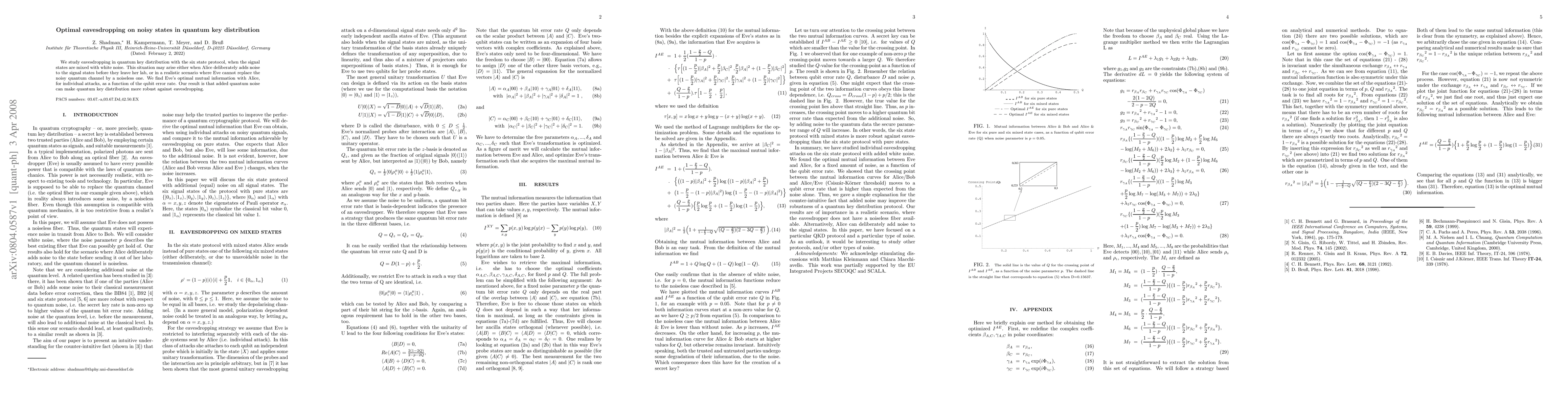 This paper investigates optimal eavesdropping strategies in quantum key distribution using the six-state protocol when signal states are mixed with white noise. The authors find that added quantum noise can enhance the robustness of quantum key distribution against eavesdropping.