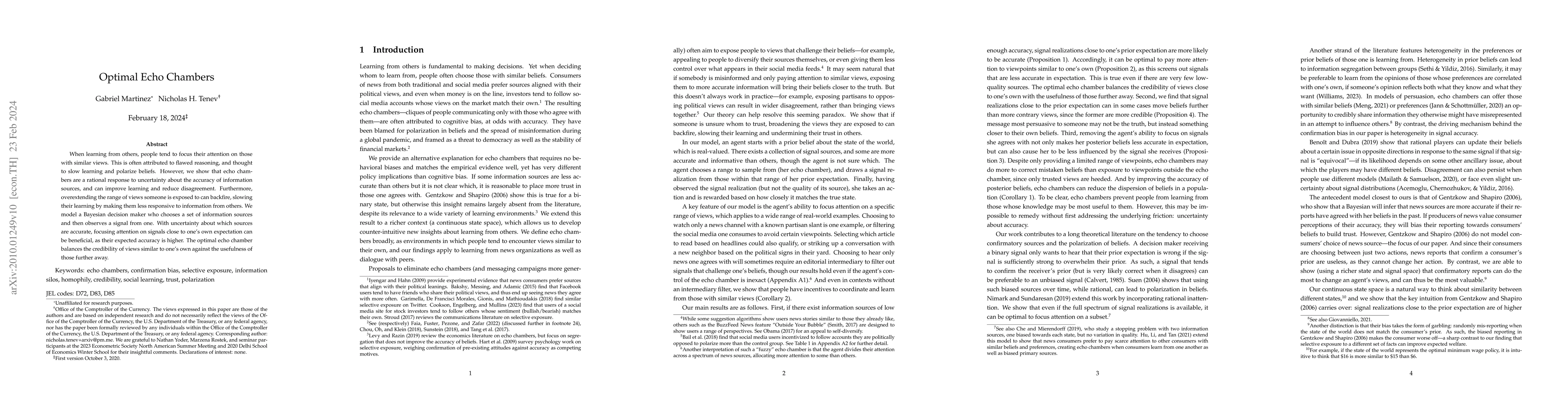 This paper argues that echo chambers, while often criticized, can be a rational response to uncertainty about information sources, potentially improving learning and reducing disagreement. It suggests that overexposure to diverse views can hinder learning by reducing responsiveness to information, thus advocating for an optimal balance of similar and dissimilar views.