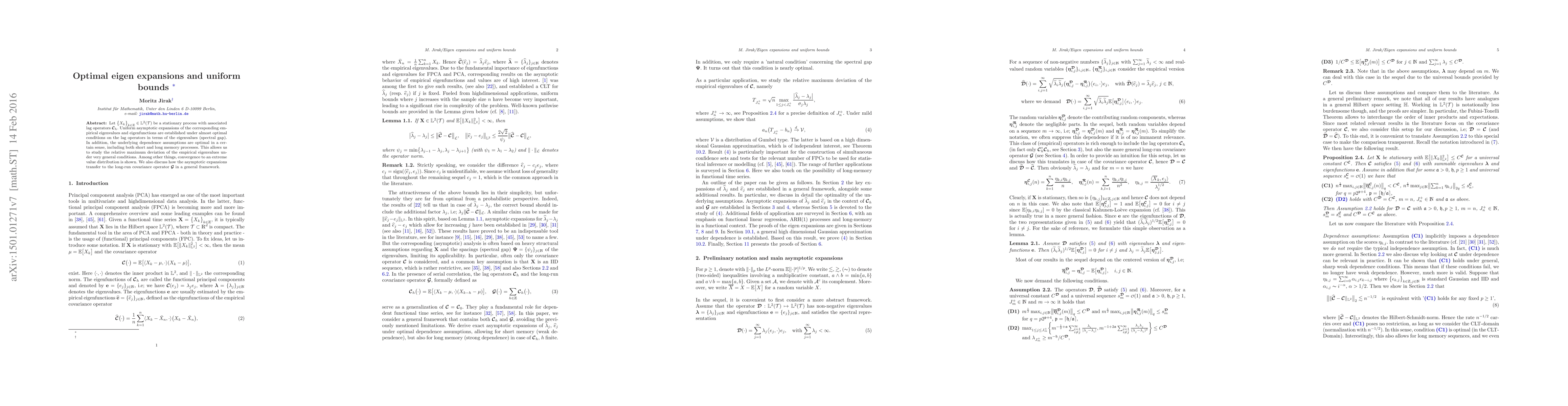 Let $\bigl\{X_k\bigr\}_{k \in \mathbb{Z}} \in \mathbb{L}^2(\mathcal{T})$ be a stationary process with associated lag operators ${\boldsymbol{\cal C}}_h$. Uniform asymptotic expansions of the corresponding empirical eigenvalues and eigenfunctions are established under almost optimal conditions on the lag operators in terms of the eigenvalues (spectral gap). In addition, the underlying dependence assumptions are optimal, including both short and long memory processes. This allows us to study the relative maximum deviation of the empirical eigenvalues under very general conditions. Among other things, we show convergence to an extreme value distribution, giving rise to the construction of simultaneous confidence sets. We also discuss how the asymptotic expansions transfer to the long-run covariance operator ${\boldsymbol{\cal G}}$ in a general framework.