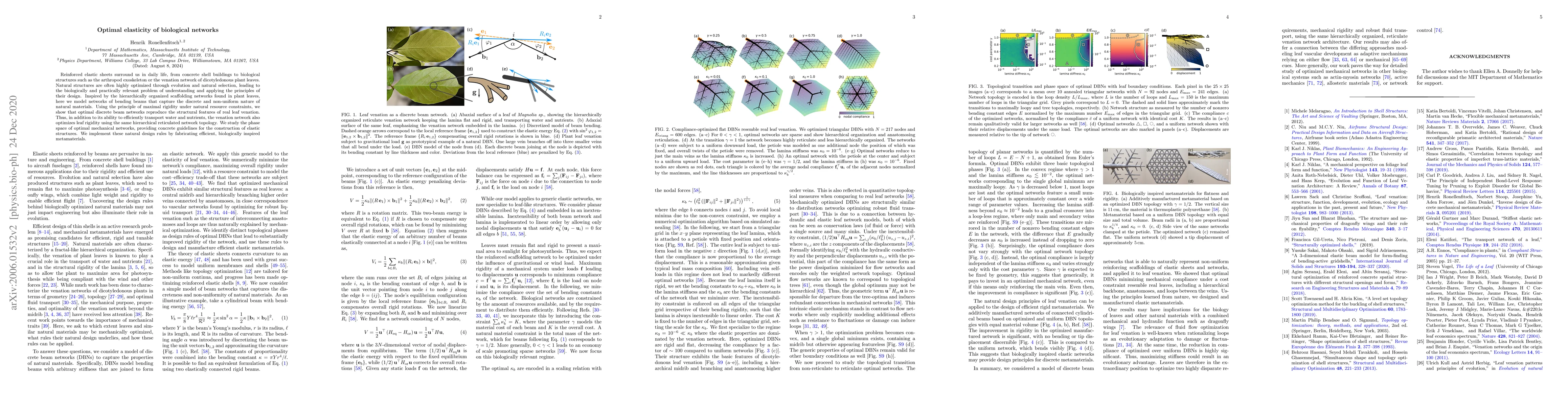 Reinforced elastic sheets surround us in daily life, from concrete shell buildings to biological structures such as the arthropod exoskeleton or the venation network of dicotyledonous plant leaves. Natural structures are often highly optimized through evolution and natural selection, leading to the biologically and practically relevant problem of understanding and applying the principles of their design. Inspired by the hierarchically organized scaffolding networks found in plant leaves, here we model networks of bending beams that capture the discrete and non-uniform nature of natural materials. Using the principle of maximal rigidity under natural resource constraints, we show that optimal discrete beam networks reproduce the structural features of real leaf venation. Thus, in addition to its ability to efficiently transport water and nutrients, the venation network also optimizes leaf rigidity using the same hierarchical reticulated network topology. We study the phase space of optimal mechanical networks, providing concrete guidelines for the construction of elastic structures. We implement these natural design rules by fabricating efficient, biologically inspired metamaterials.