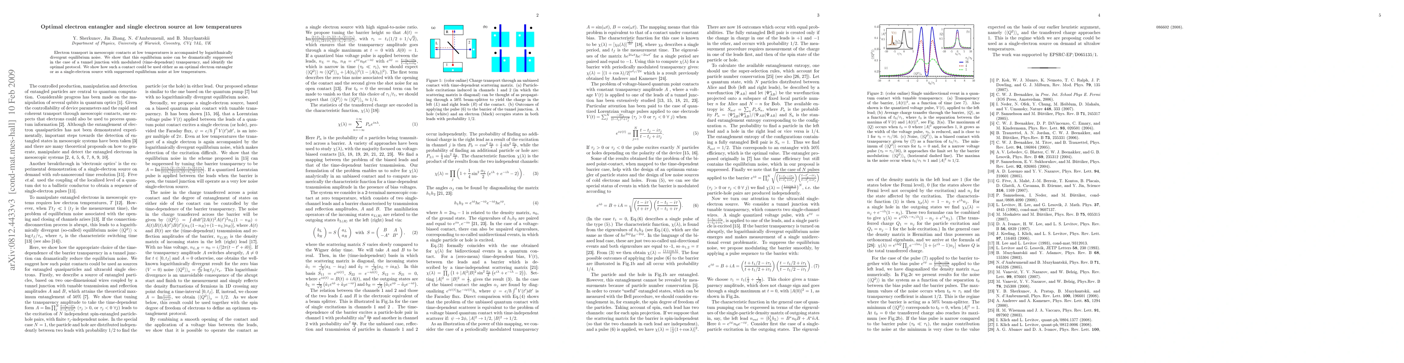 This paper demonstrates that equilibrium noise in electron transport through mesoscopic tunnel junctions can be significantly reduced using modulated transparency protocols, identifying the optimal method. Such optimized contacts can function as either an efficient electron entangler or a single-electron source with minimal equilibrium noise at low temperatures.