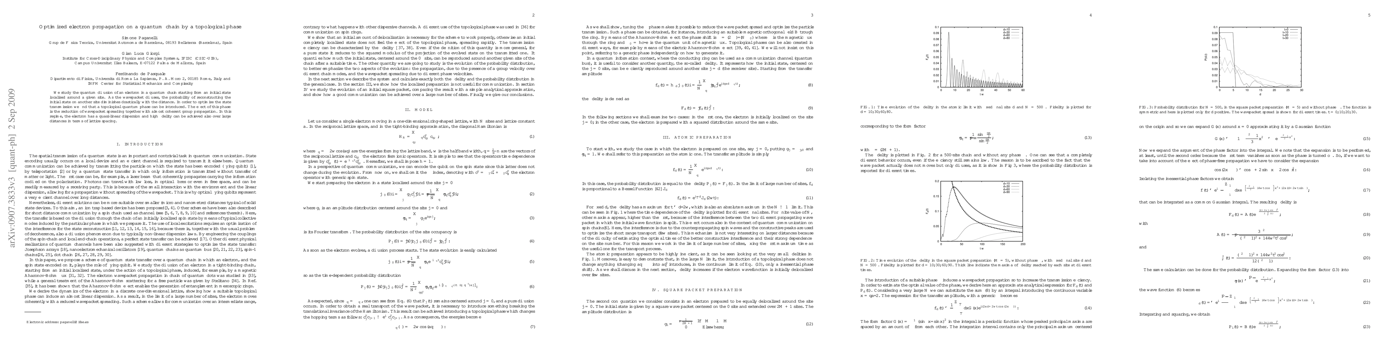 This research explores quantum diffusion in a quantum chain, demonstrating that introducing a topological quantum phase can significantly reduce wavepacket spreading and enhance electron propagation fidelity, enabling quasi-linear dispersion and efficient state transmission over large distances.