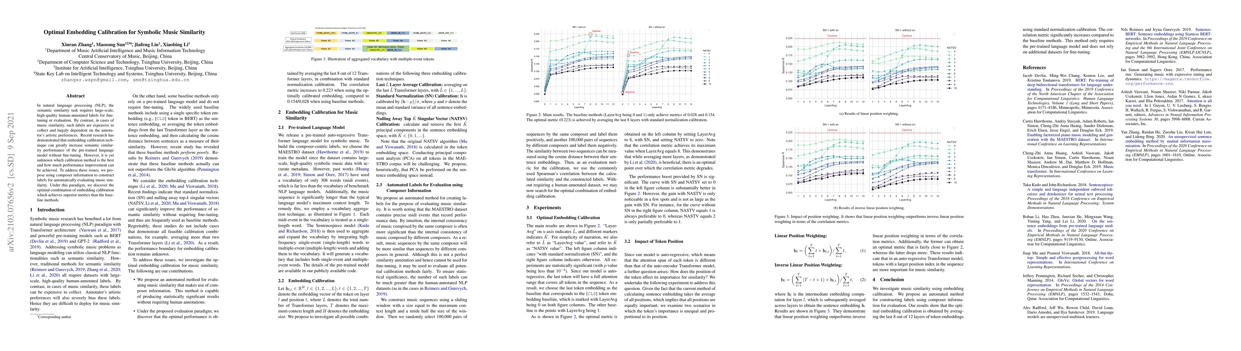 This paper explores the optimal embedding calibration techniques for symbolic music similarity, proposing a method using composer information to generate evaluation labels. It finds the best calibration method to achieve superior performance over baselines without requiring costly human annotations.