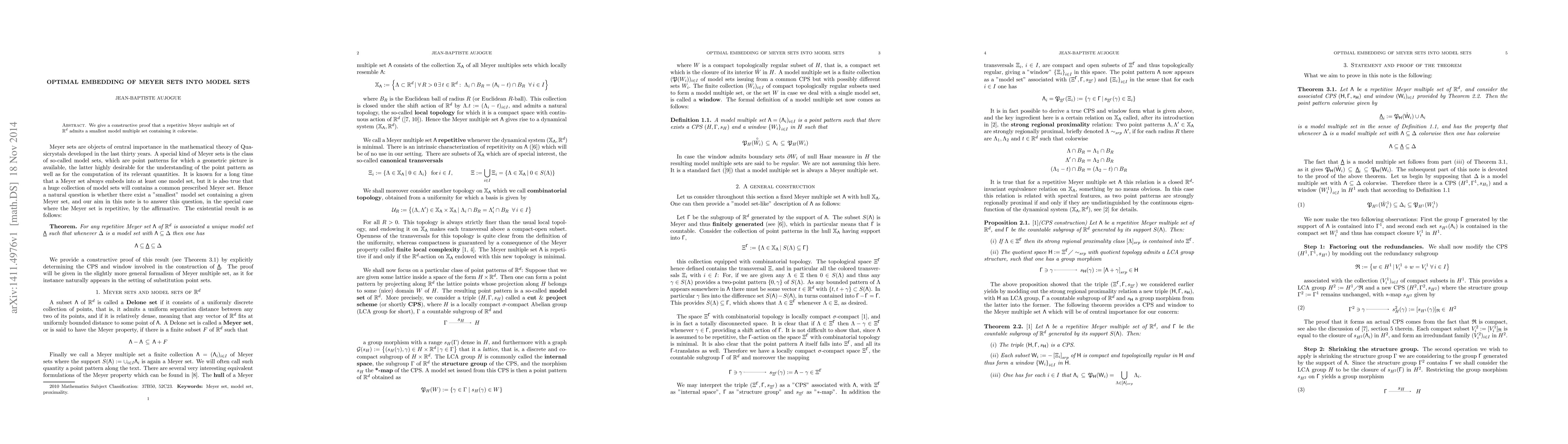 We give a constructive proof that a repetitive Meyer multiple set of $\mathbb{R}^d$ admits a smallest model multiple set containing it colorwise.
