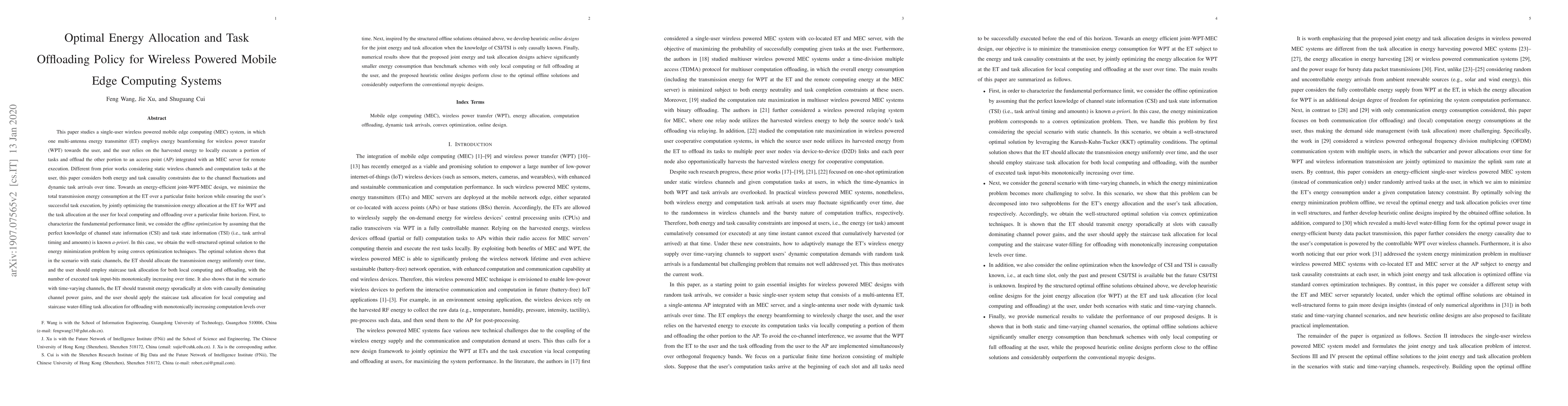 This paper optimizes energy allocation and task offloading in wireless powered mobile edge computing systems, minimizing transmission energy while ensuring task execution. It presents offline optimal solutions via convex optimization and develops heuristic online designs for practical scenarios, showing significant energy savings compared to benchmark methods.