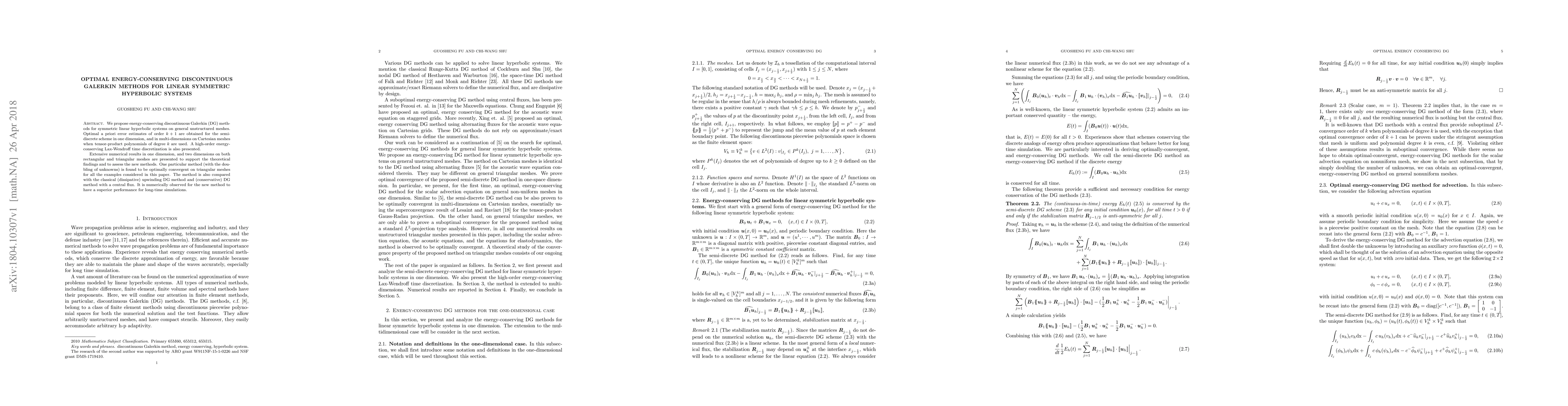 This research introduces energy-conserving discontinuous Galerkin (DG) methods for symmetric linear hyperbolic systems on unstructured meshes, achieving optimal a priori error estimates. A high-order, energy-conserving time discretization is also presented. Numerical experiments demonstrate superior performance of the new method over classical dissipative and conservative DG methods for long-time simulations, particularly on triangular meshes.