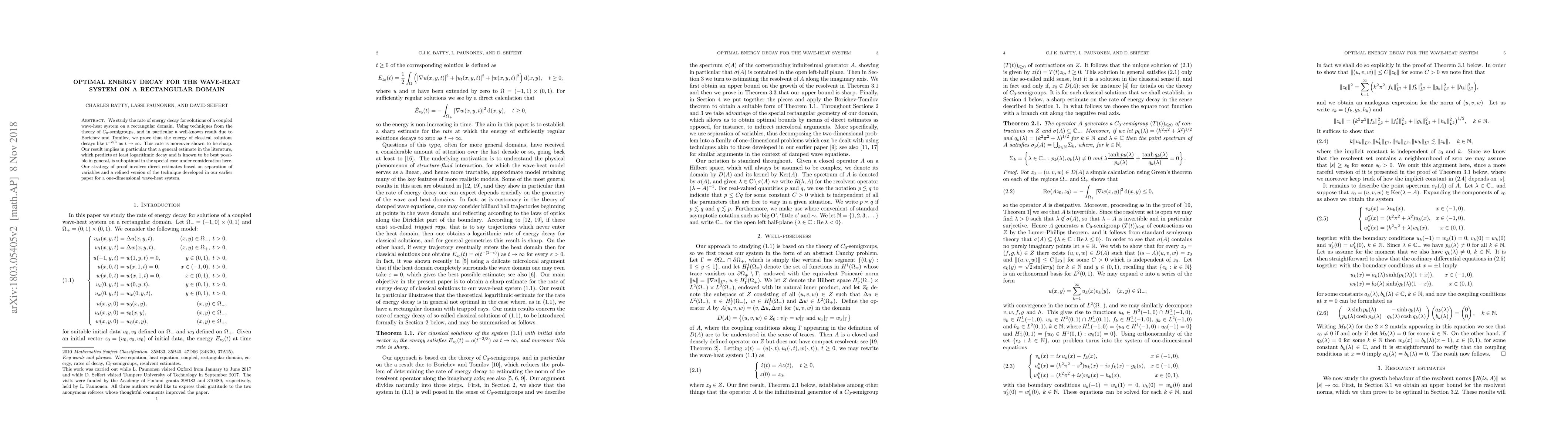 This paper investigates the optimal energy decay rate for a coupled wave-heat system on a rectangular domain, proving that classical solutions exhibit a $t^{-2/3}$ decay as time approaches infinity, which is shown to be sharp. This result demonstrates that a previously known suboptimal logarithmic decay estimate is not applicable in this specific case.