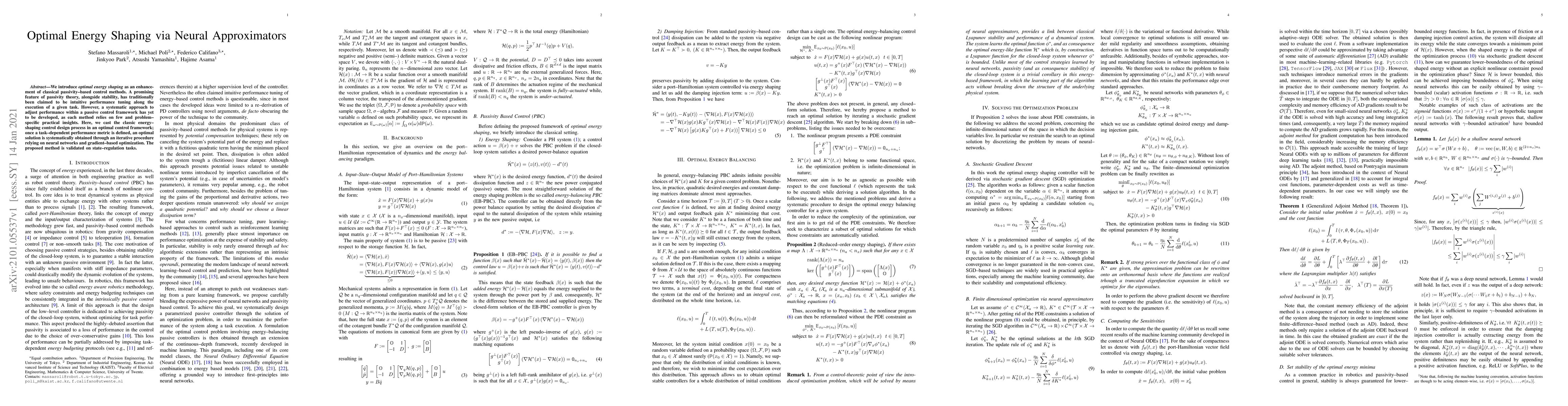 This paper proposes an optimal energy shaping method using neural networks to enhance classical passivity-based control, enabling systematic performance tuning during task execution. The method iteratively optimizes a task-dependent performance metric through gradient-based optimization, validated on state-regulation tasks.