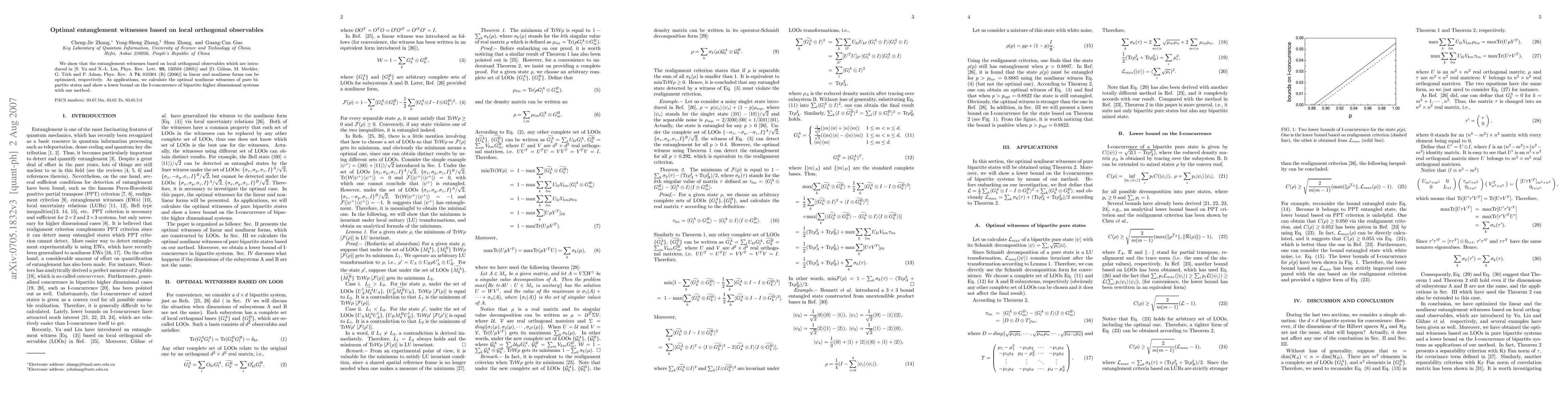 This paper optimizes entanglement witnesses derived from local orthogonal observables, improving upon previous linear and nonlinear forms. The study calculates optimal nonlinear witnesses for pure bipartite states and establishes a lower bound on the I-concurrence for higher-dimensional bipartite systems.