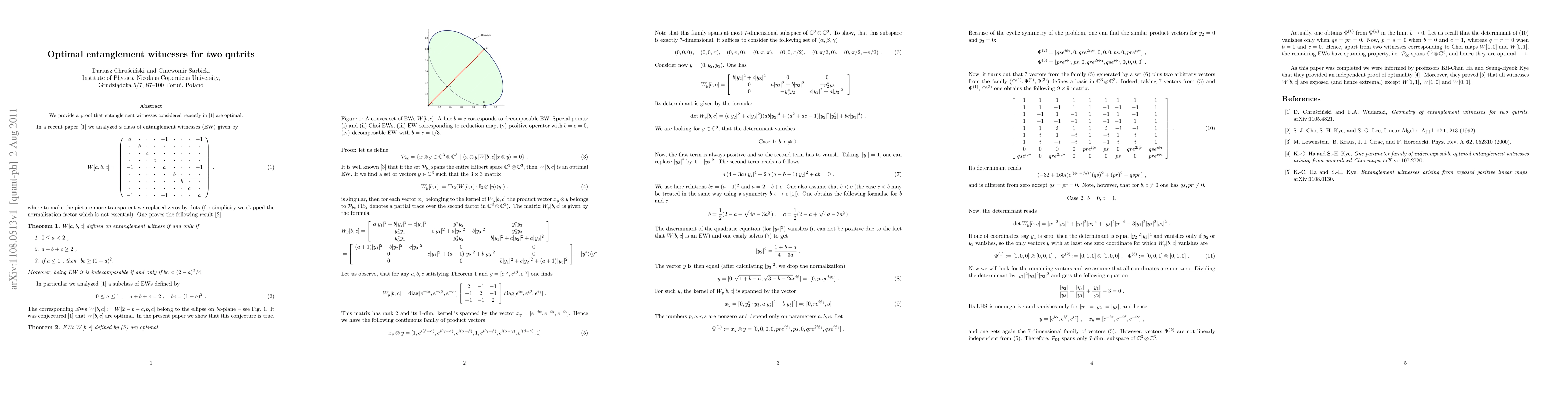 Summary: This paper proves that entanglement witnesses introduced by Chruściński and Wudarski are optimal for detecting entanglement in two-qutrit systems. The authors demonstrate the superiority of these witnesses over other methods.