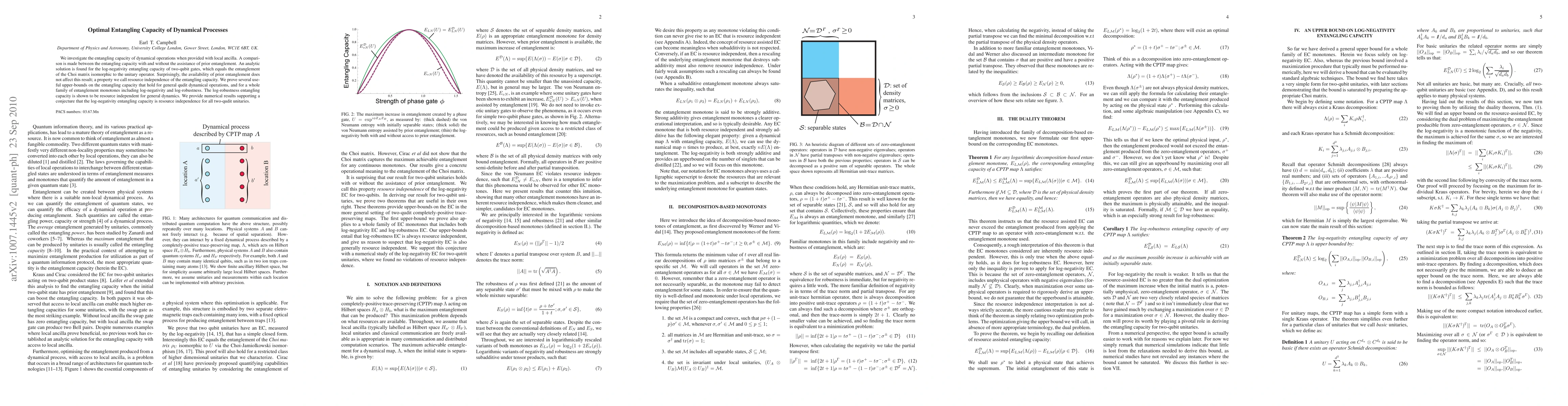 This paper investigates the entangling capacity of dynamical operations with local ancilla, finding that the log-negativity entangling capacity is resource independent, meaning prior entanglement does not affect it. It also proves upper-bounds on the entangling capacity for general qudit operations and supports a conjecture for the resource independence of log-negativity entangling capacity for all two-qudit unitaries.