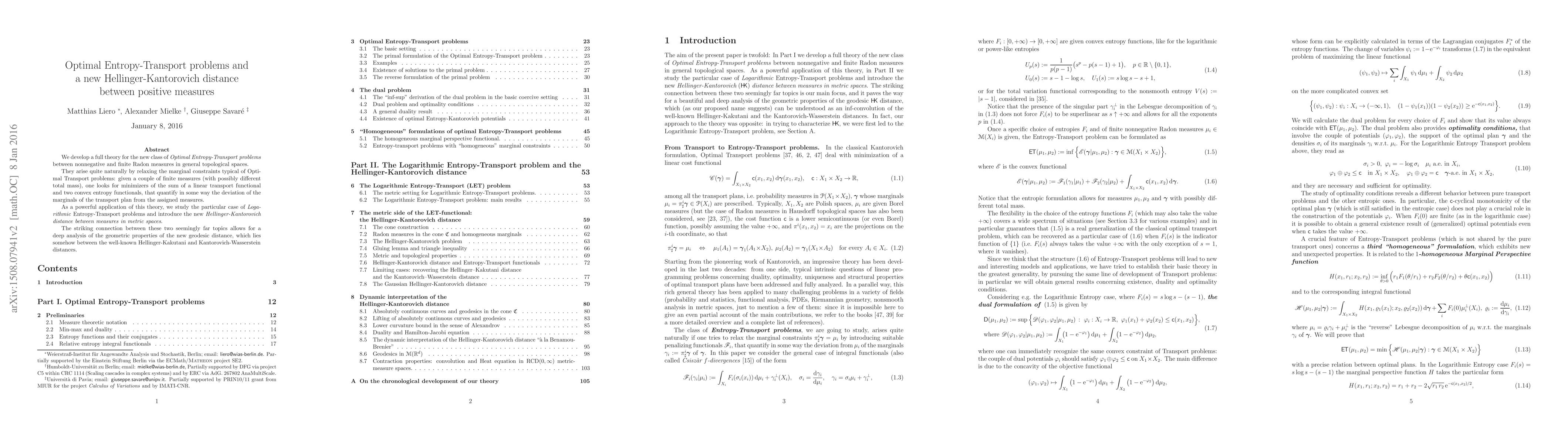 This paper develops a comprehensive theory for Optimal Entropy-Transport problems in topological spaces, introducing a new Hellinger-Kantorovich distance between measures. It explores the connection between entropy-based relaxations of transport constraints and the new geodesic distance, which lies between the Hellinger-Kakutani and Kantorovich-Wasserstein distances.