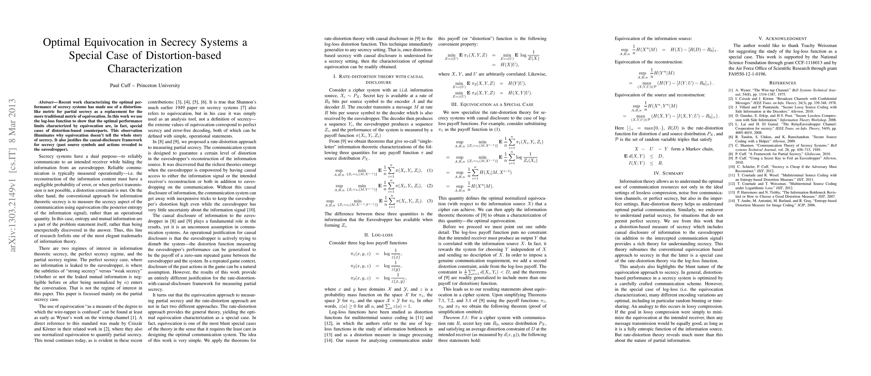 This paper shows that optimal secrecy system performance limits can be characterized using distortion-based metrics, which offers a new perspective on the limitations of traditional equivocation-based analysis.