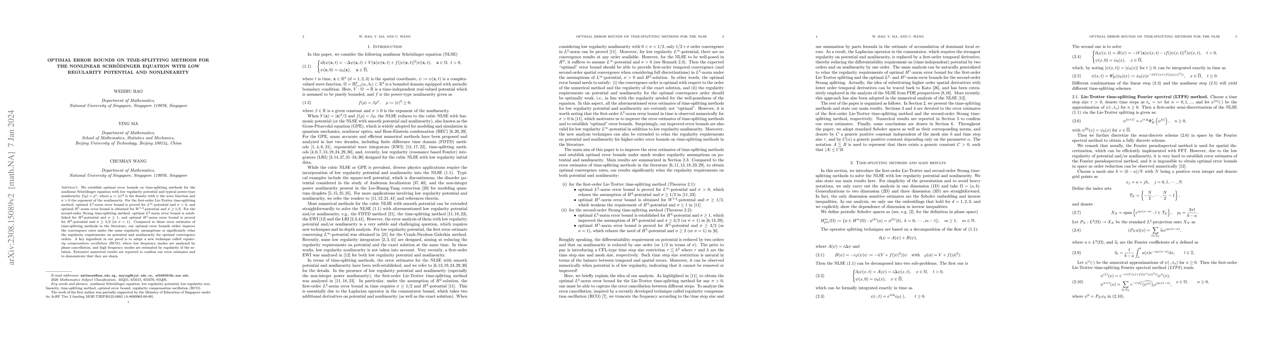 This paper establishes optimal error bounds for time-splitting methods applied to the nonlinear Schrödinger equation under low regularity conditions. The authors introduce a novel technique called regularity compensation oscillation (RCO) to analyze error bounds, achieving improvements over previous methods either by better convergence rates or by relaxing regularity assumptions. Numerical results confirm the sharpness of the derived error estimates.