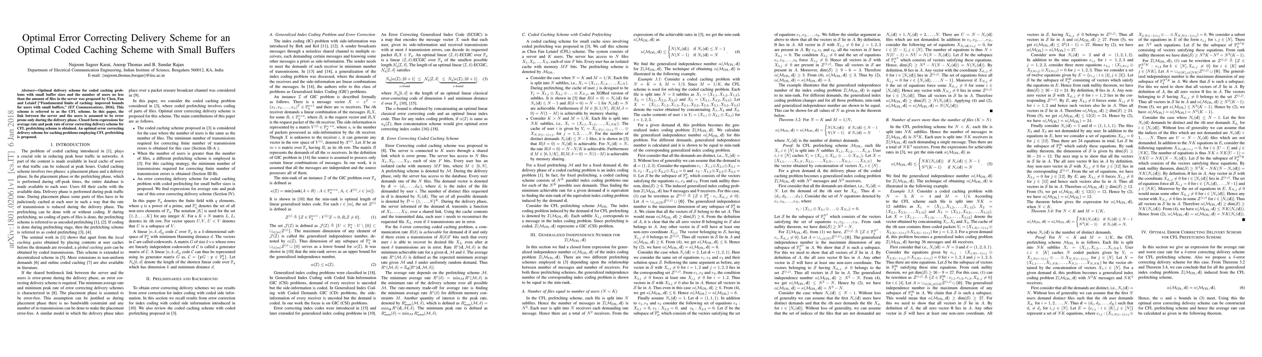 Optimal delivery scheme for coded caching problems with small buffer sizes and the number of users no less than the amount of files in the server was proposed by Chen, Fan and Letaief ["Fundamental limits of caching: improved bounds for users with small buffers," (IET Communications), 2016]. This scheme is referred to as the CFL scheme. In this paper, the link between the server and the users is assumed to be error prone only during the delivery phase. Closed form expressions for average rate and peak rate of error correcting delivery scheme for CFL prefetching scheme is obtained. An optimal error correcting delivery scheme for caching problems employing CFL prefetching is proposed.