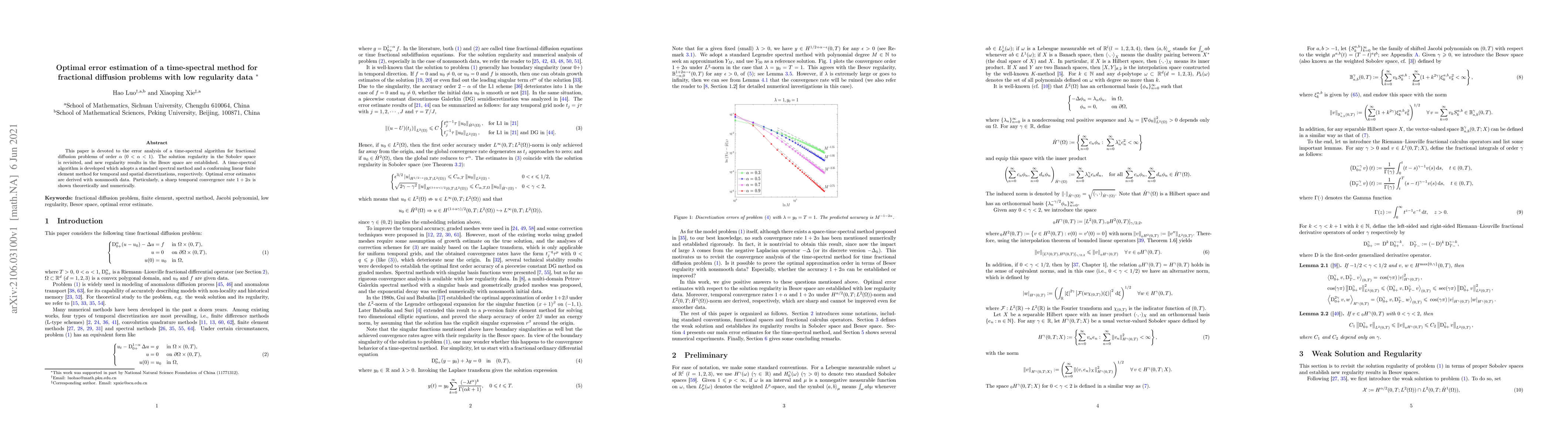 This paper analyzes a time-spectral algorithm for fractional diffusion problems, establishing new regularity results and deriving optimal error estimates with nonsmooth data, including a sharp temporal convergence rate of $1+2\alpha$.
