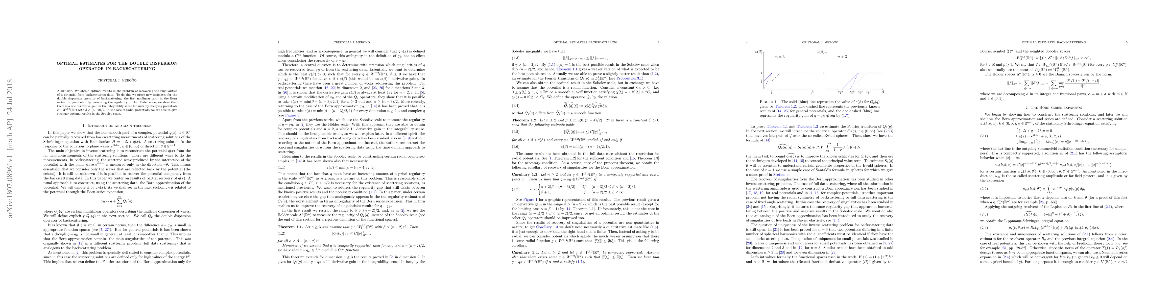 Researchers developed new estimates for the double dispersion operator in backscattering data, showing a one derivative gain in recovering potential singularities from measured regularity in the H"older scale.