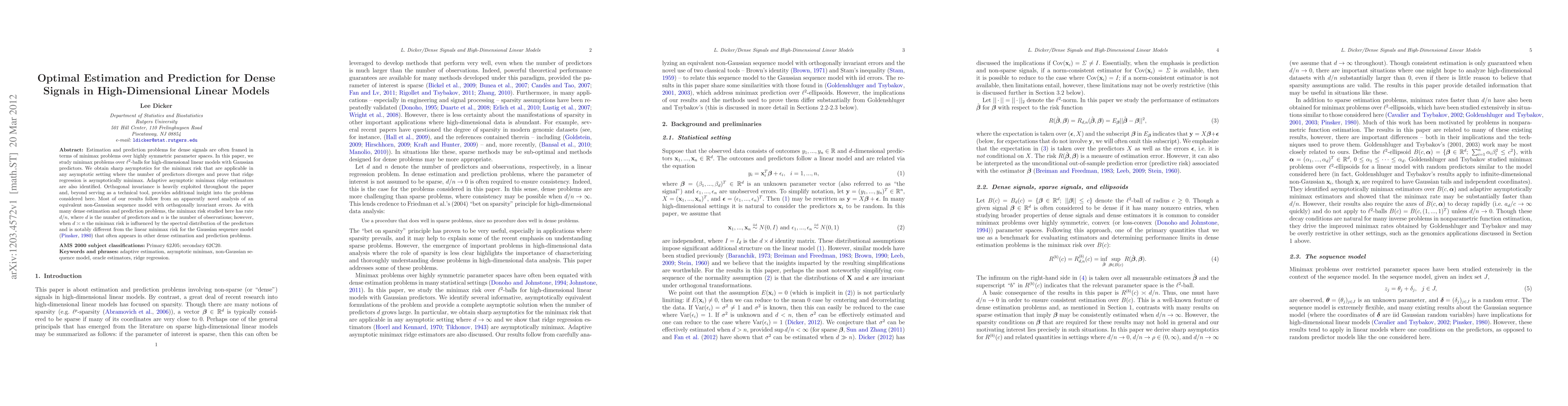 This paper investigates minimax estimation and prediction for dense signals in high-dimensional linear models with Gaussian predictors, proving that ridge regression is asymptotically optimal. It introduces adaptive estimators and highlights the importance of orthogonal invariance, revealing that the minimax risk depends on the spectral distribution of predictors when the number of predictors is proportional to the number of observations.