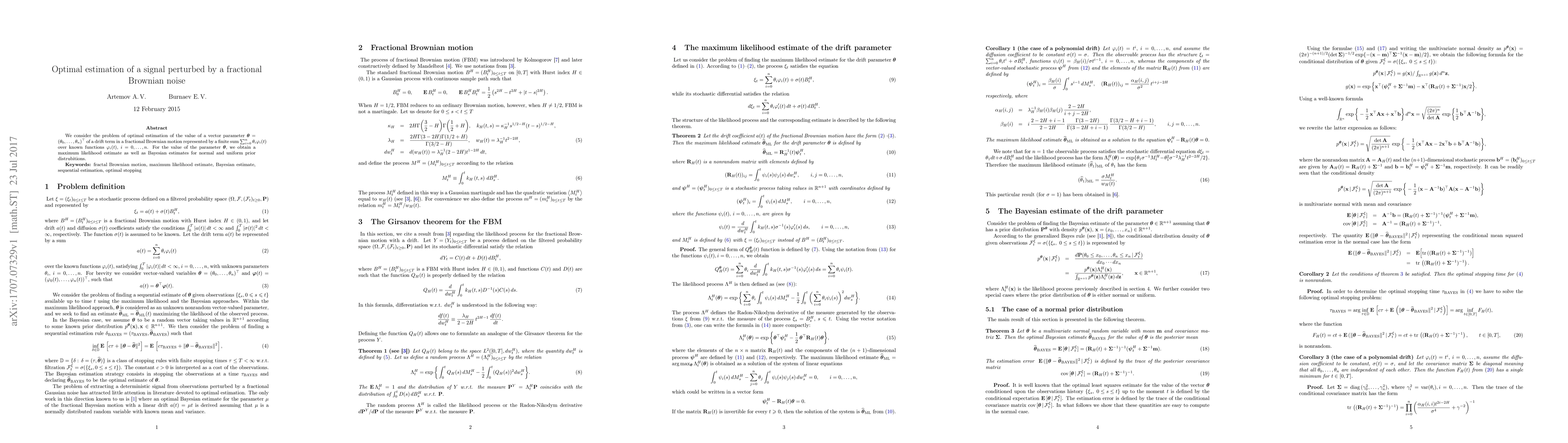 We consider the problem of optimal estimation of the value of a vector parameter $\thetavector=(\theta_0,\ldots,\theta_n)^{\top}$ of the drift term in a fractional Brownian motion represented by the finite sum $\sum_{i=0}^{n}\theta_{i}\varphi_{i}(t)$ over known functions $\varphi_i(t)$, $\alli$. For the value of parameter $\thetavector$, we obtain a maximum likelihood estimate as well as Bayesian estimates for normal and uniform a priori distributions.